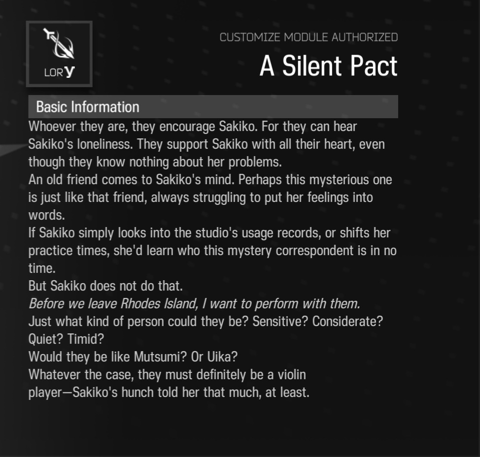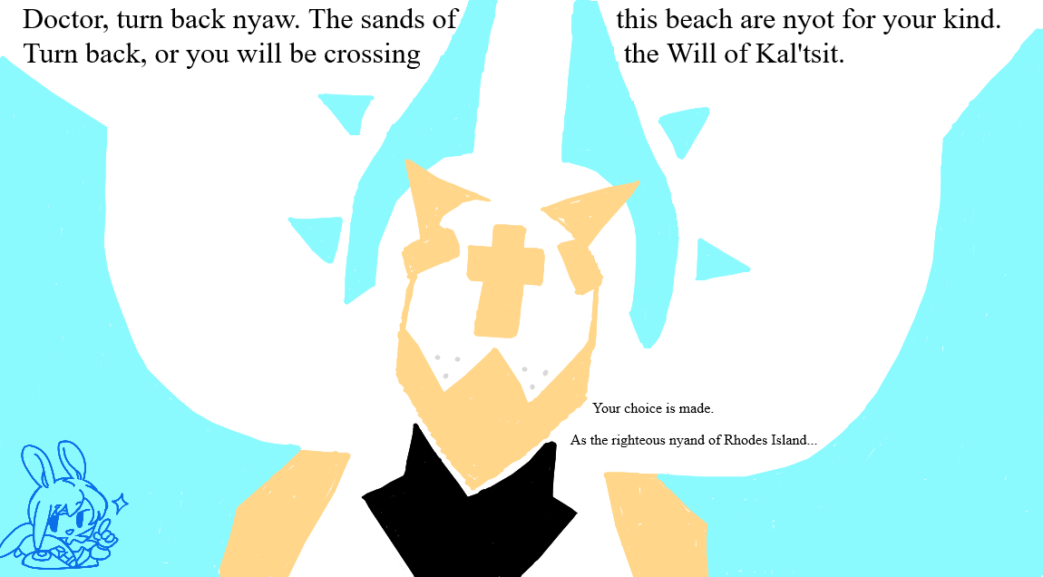 >>556966060No, but there is some originium fuckery going on in his file.>[Somatic cell fusion rate with Originium] 0%>[Blood Originium Crystal Density] 0.00u/L>Look! The reading suddenly jumped off the charts, then suddenly jumped back to zero... The instrument was working perfectly just now, so what happened...?>—The astonished medical staff>...I asked the Docotr, and he said to write it as zero.>—Warfarin, pinching the bridge of her nose and looking up at the sky, no longer caring about anything. There's also the Suis working to catch him in a painting at RI after he kept trying to avoid them with Dusk being teary-eyed even though she seemed like she didn't like him in previous events.