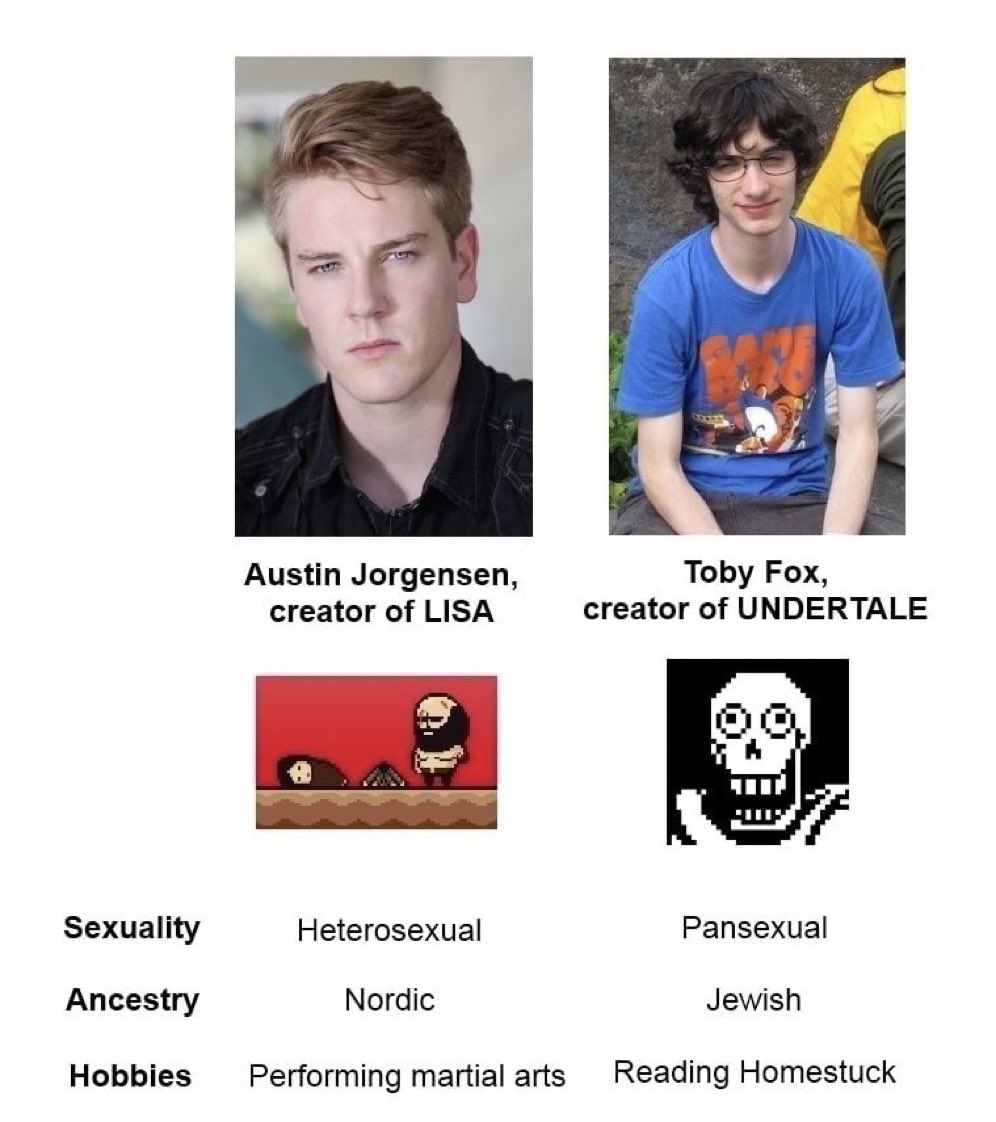 I always say that to really appreciate Undertale for what it is - a satire of JRPG tropes - you need to have played a decent amount of them. The target audience for the game was the people who grew up with those RPGs and would have the jokes right in their face, as well as the "wow" factor of the ending of their first run hitting them during the judgment hall segment.However, the game ended up making a massive splash among the younger crowd due to its popularity through mediums like Tumblr, where they loved things like the colorful dynamic cast of characters instead and the AUs created of them. Or the "deepest hidden lore" with stuff like Gaster. Their focus was on an entirely different aspect, which caused the fandom to skew in an entirely different direction, leaving millennials who grew up raised on stuff like Earthbound in the minority.Not meaning any of that in a gatekeeping or judgmental way, mind you, but purely observational and something that I find so interesting. There was nothing more jarring than going to an Undertale photoshoot at a con when it first exploded in popularity back in late 2015/early 2016, and seeing mostly tweens and teens there, and only a few other adults.