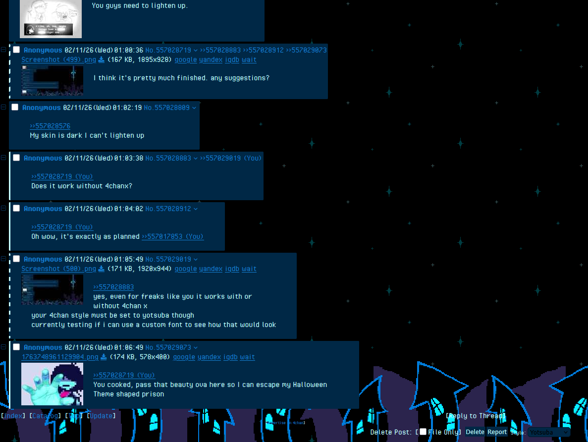are there custom 4chan themes that can work on phones or is this my punishment for mobilefagging