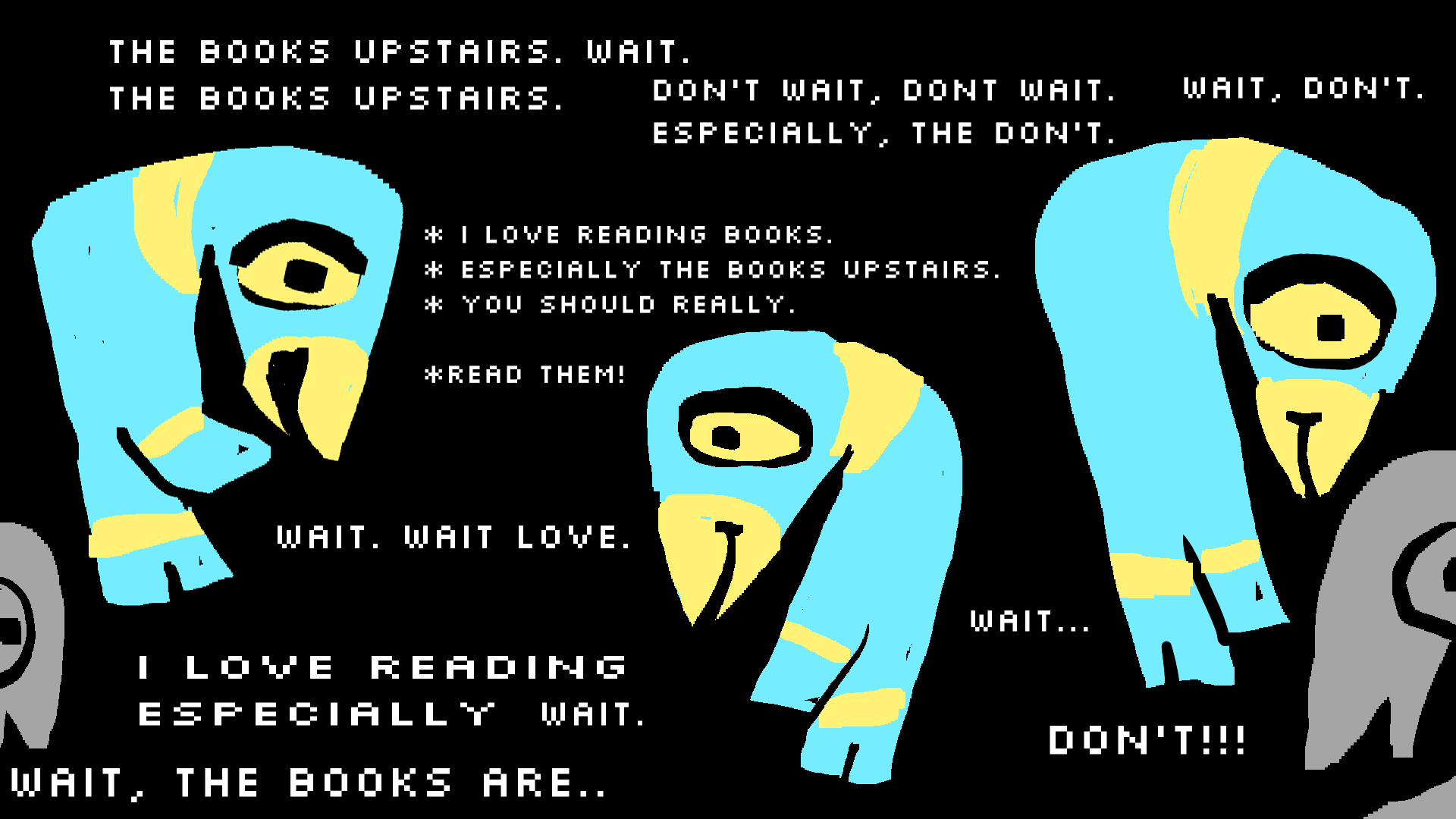 I forgot my headphones now I have to spend the whole of today annoyed by the sound of others and musicless aaaaahh said napstablook