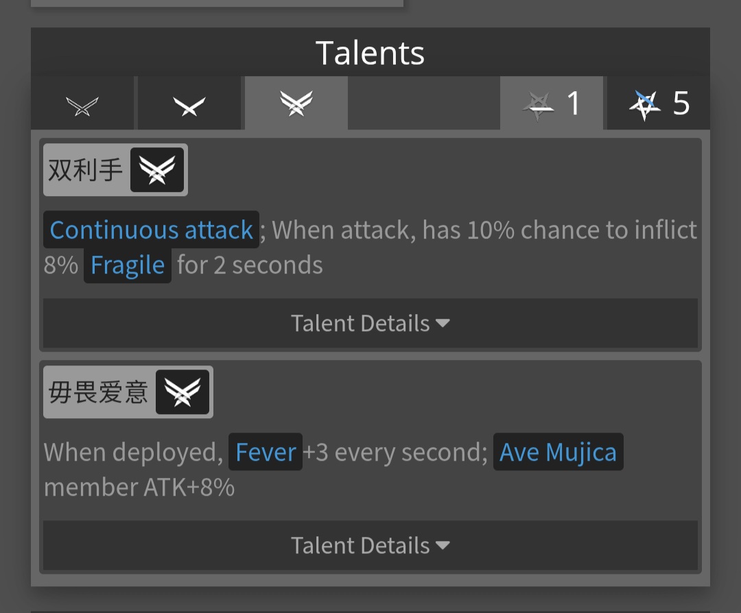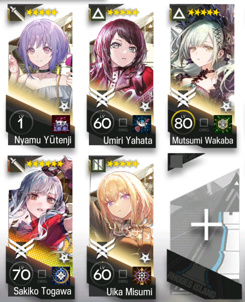 >>556986280if you have all 5 Mujica deployed at the same time, they'll sing a vocal version of the Fever song.But other than that Nyamu is the least important Mujica, goes in terms of usefulUmiri > Wakaba > Uika >Nyamu>Umiri is the best range extender and has a cool CC combo with both of their S1>Wakaba is a brick wall you can put in front of Sakiko and her S2 is surprisingly strong with Sakiko buffs>Uika is a decent healer and Bard, range extend over lanes>Nyamu can deal with trash and apply a small fragile + small attack buff