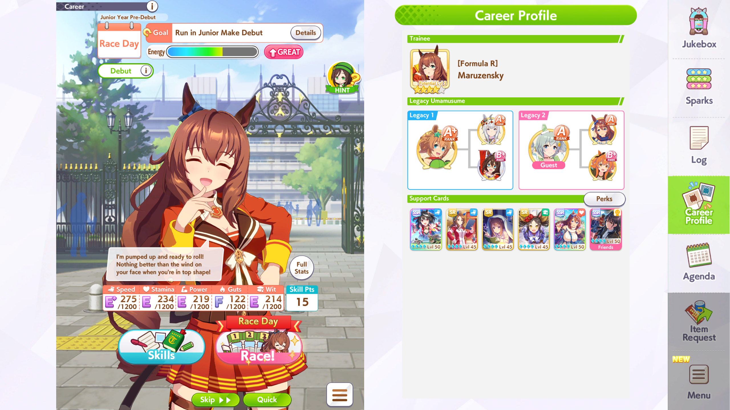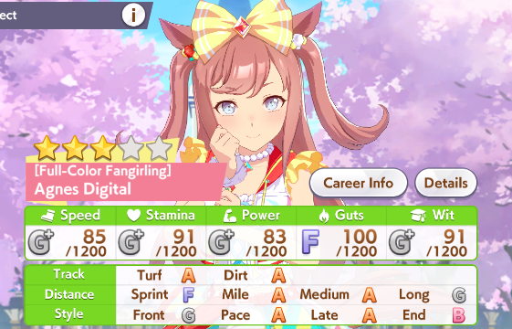 >>557005753Aoharu G1 farming is best with late and end due better speed during late race and lower stamina requirements.Its the best place to farm Ryan and Dober parents for now