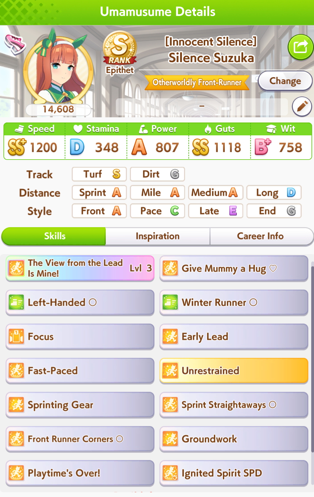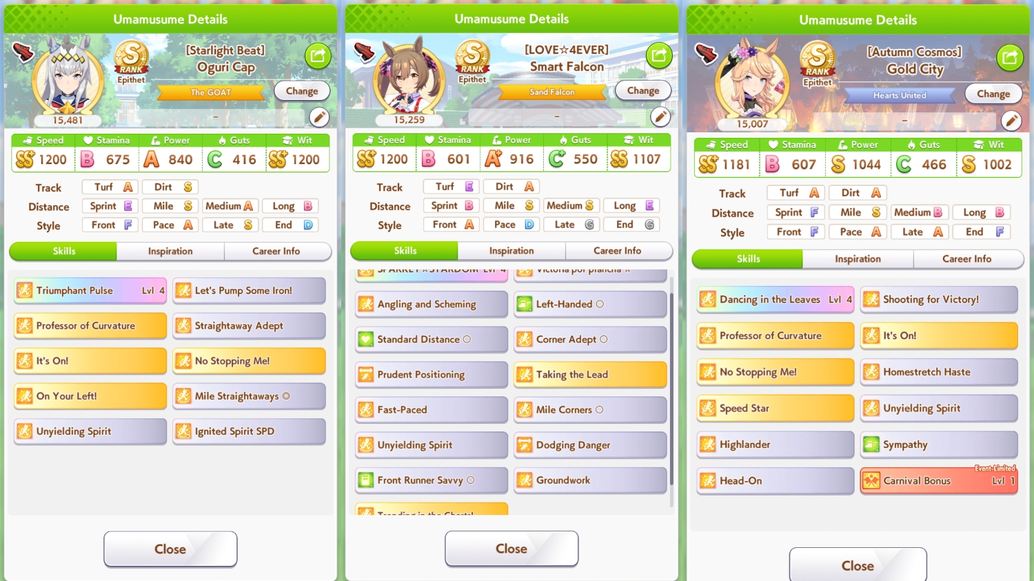 >>557004534NTA but I could never make parent runs work in Aoharu either. They either come out with good stats but no race affinity/SP or good affinity skills, but fail the career due to low stats. I think the good Aoharu parents that get posted here are photoshopped.