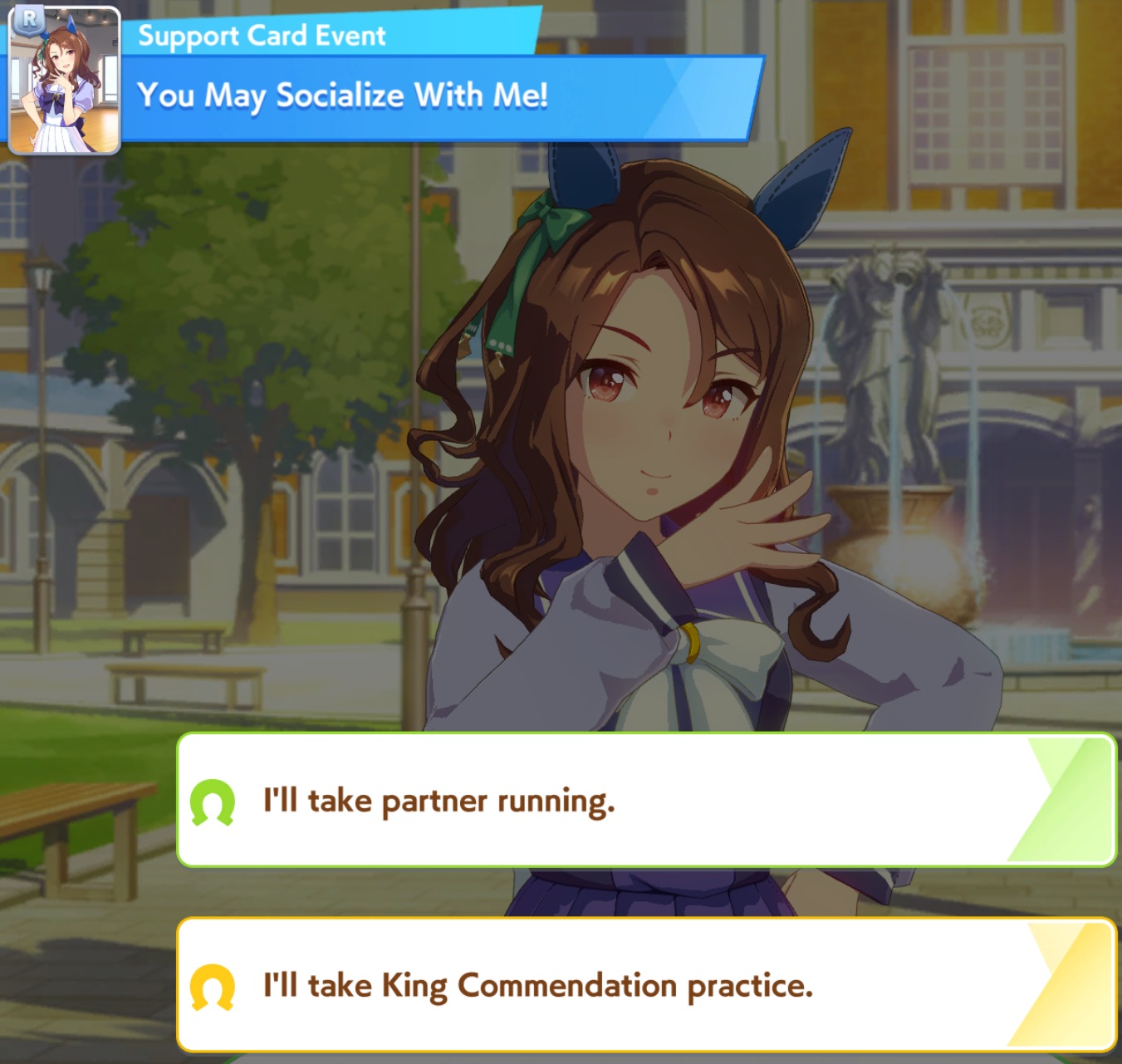 Previous: >>556943235>Global Game NewsLink your account to Cygames iDCurrent Scenario: Aoharu Hai aka "Unity Cup"Current Rate Up Trainee: New Year's Scout (3*)Current Rate Up Support Cards: New Year's Scout (SSR), SSR Sasami Anshinzawa (Pal), SR Tamamo Cross (Guts)Current CM: Capricorn Cup - Chukyo Turf 1200mMain Story Chapter 5 is out01/27 - New Beginnings Part 101/29 - NY Opera & Haru 3*+Fuku SSR+Ayabe SSR02/05 - 02/12 Racing CarnivalMid February - Capricorn Cup - Chukyo Turf 1200mhttps://umamusume.com/news/100040/https://pages.snep.pw/uma/anni-skill-changes/>JP Game NewsCurrent Rate Up: Valentine Taiki Shuttle (3*), Valentine Sounds of Earth (3*), SSR Matikanefukukitaru, SSR Neo UniverseNew Scenario "Yukoma Hot Spring" releasedTimeline: https://uma.moe/timelineCygames Webstore: https://webstore.cygames.com/en/umamusume_en/>Thread Clubshttps://rentry.co/umaglobalclublistYou must be E3 (20k points) to join a circle. Apply with /uma/ or /vg/ in your profile or post ID in the thread.>All Guides & Resourceshttps://rentry.org/uma26Game databasehttps://gametora.com/umamusume (Click the gear to switch between JP / global server info)A basic guide for newfagshttps://rentry.org/umaglobalFind networks if your region is blocked from the game or clienthttps://www.umavpn.top/93Seiyuu & Concertshttps://rentry.org/umstUma Texthttps://umareader.idsmile.xyz/