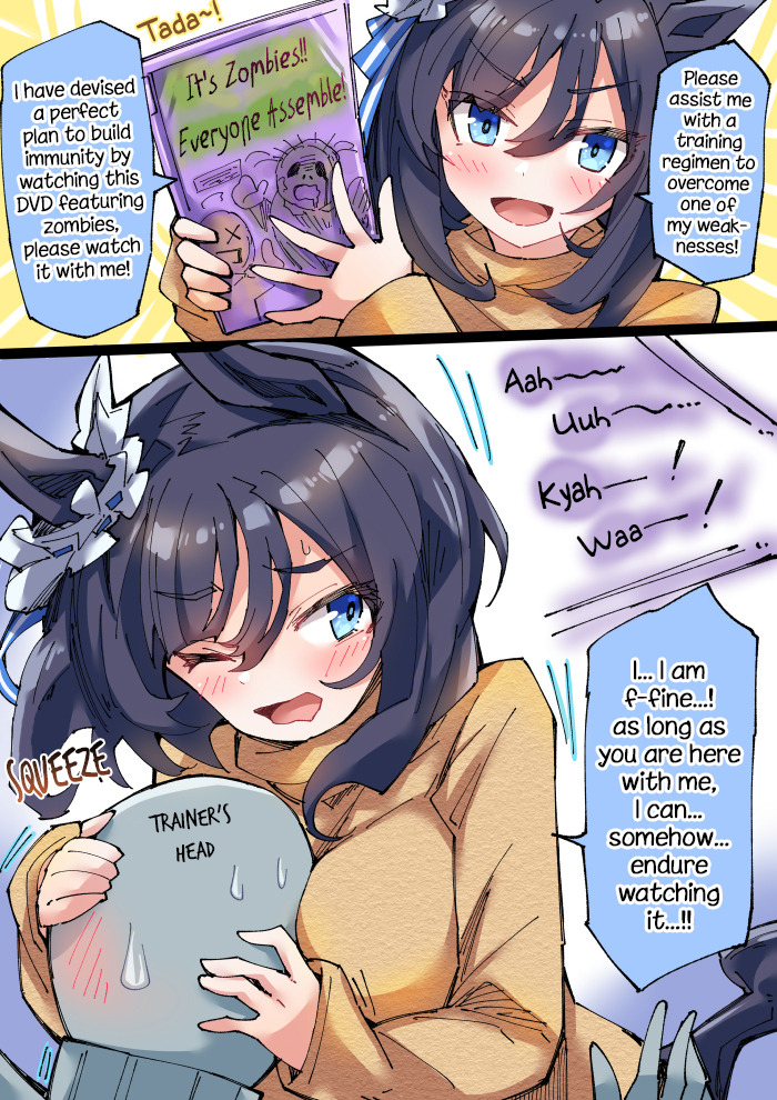 >>557006641>>557006461>>557006292These ones are scary. Imagine you're just living your best trainer life, totally fine, and these creatures 20x stronger than you just grab onto you and make up lies about your mental state and drag you away with such grip force that you can't break free and next thing you know you're in a storage closet being told you're burning up and dripping sweat when you're 100% fine and then she's stripping your clothes off saying you need tending to. Then you remember the emergency whistle Miss Tazuna gave you at orientation. You reach to your bag only to find the whistle has been crushed and there's no escape for you as this delirious maniacal gorilla woman has her way with you.Terrifying.