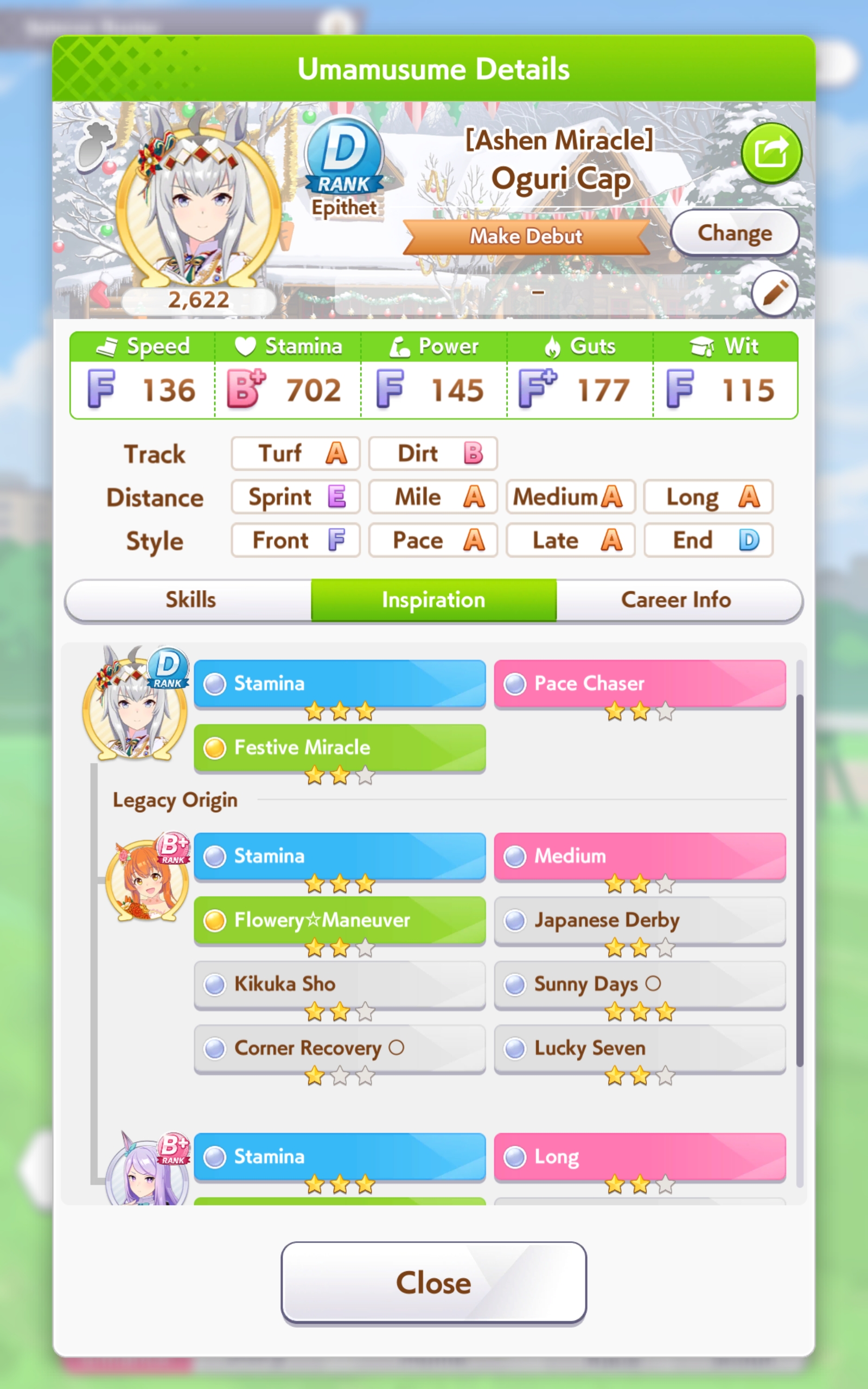 Almost forgot to do a career run today and decided to do a quick fail run with Oguri. This is only the second time I've managed to get a 9* stamina