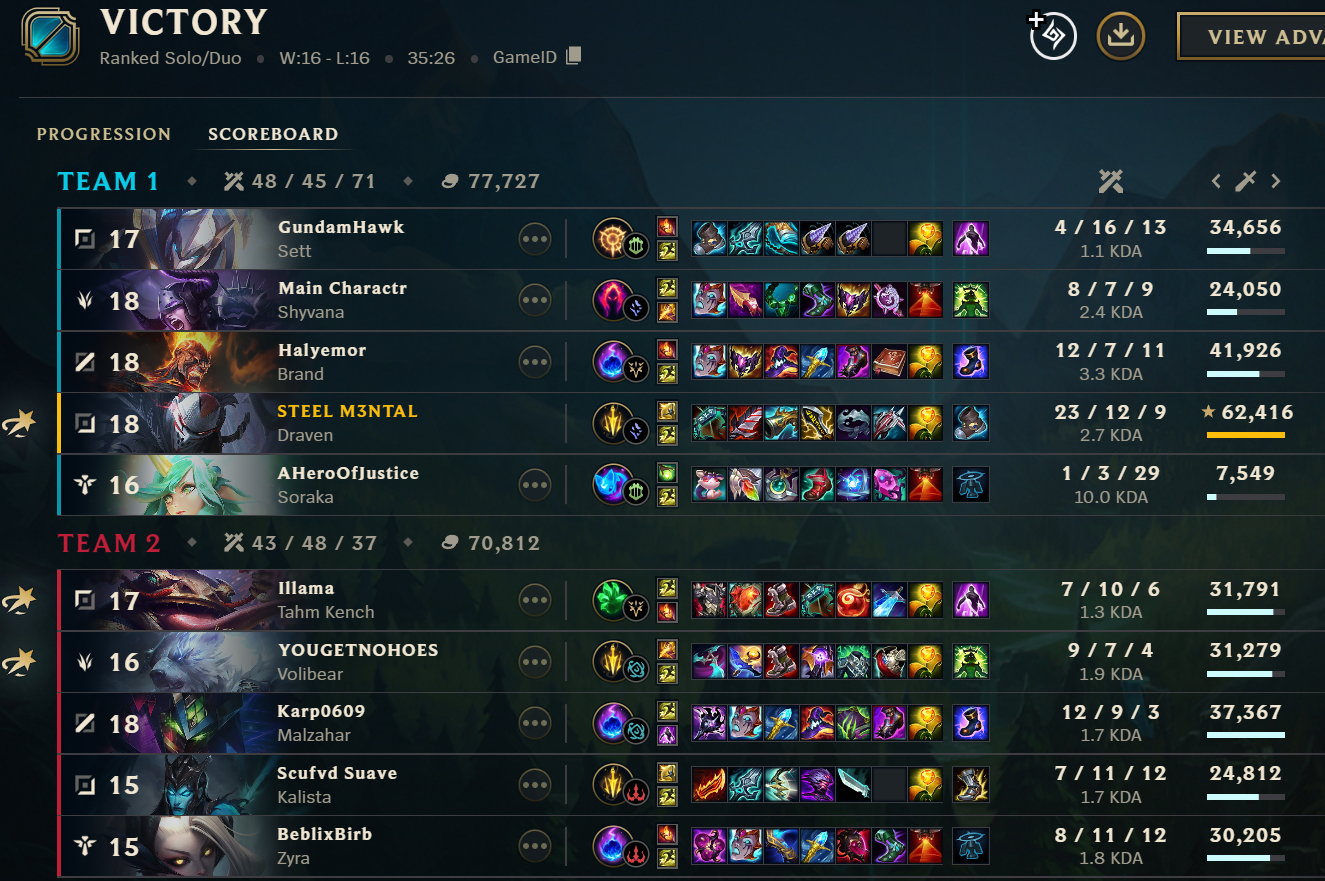I wish I could main draven but he's banned every game and I don't like other adc champs...That vg game I picked DRAVEN yesterday really got my blood flowing I haven't had that much fun playing league in literal years