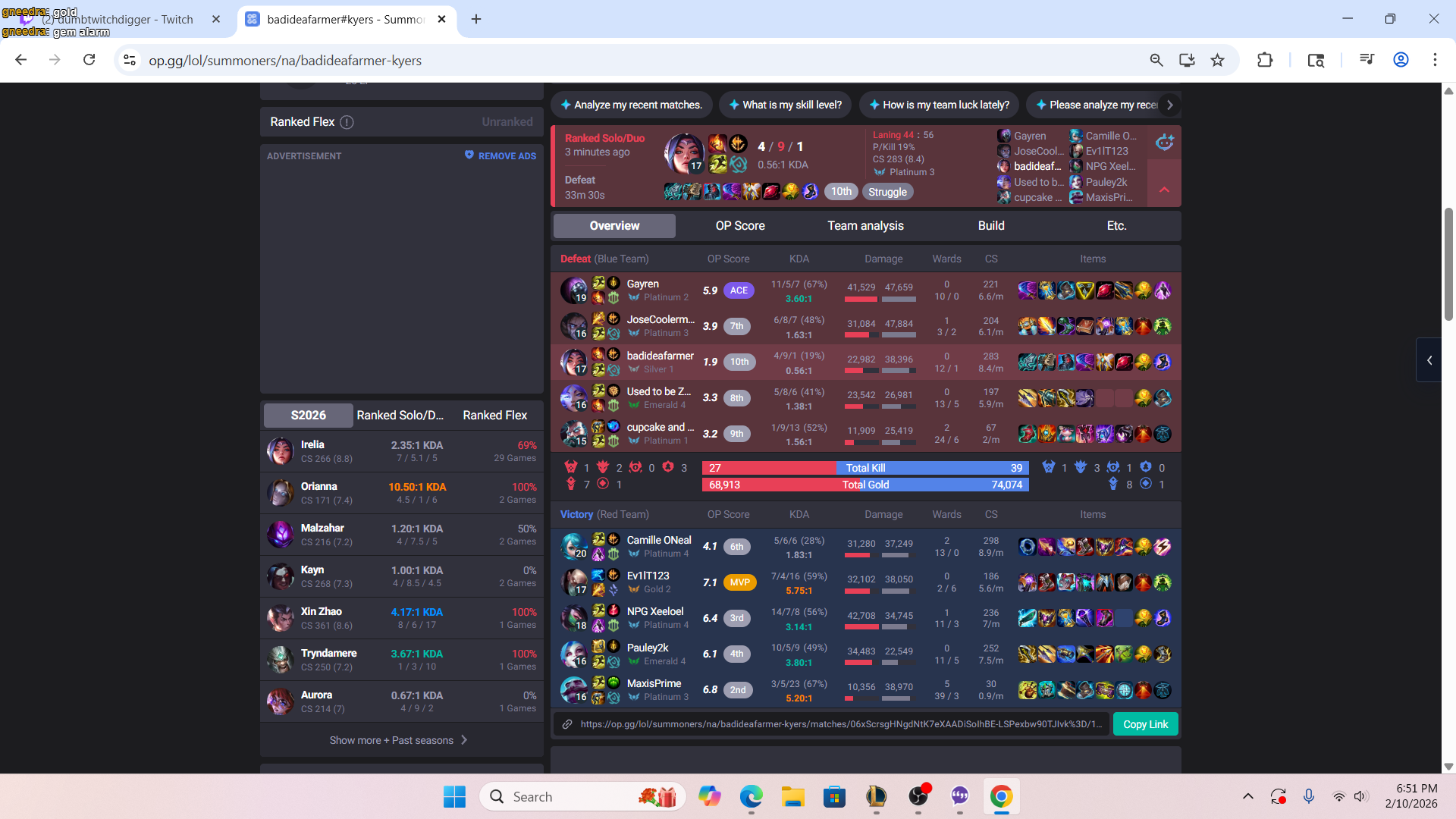 >>557047225>He doesn't build assassin Ninja Rammus