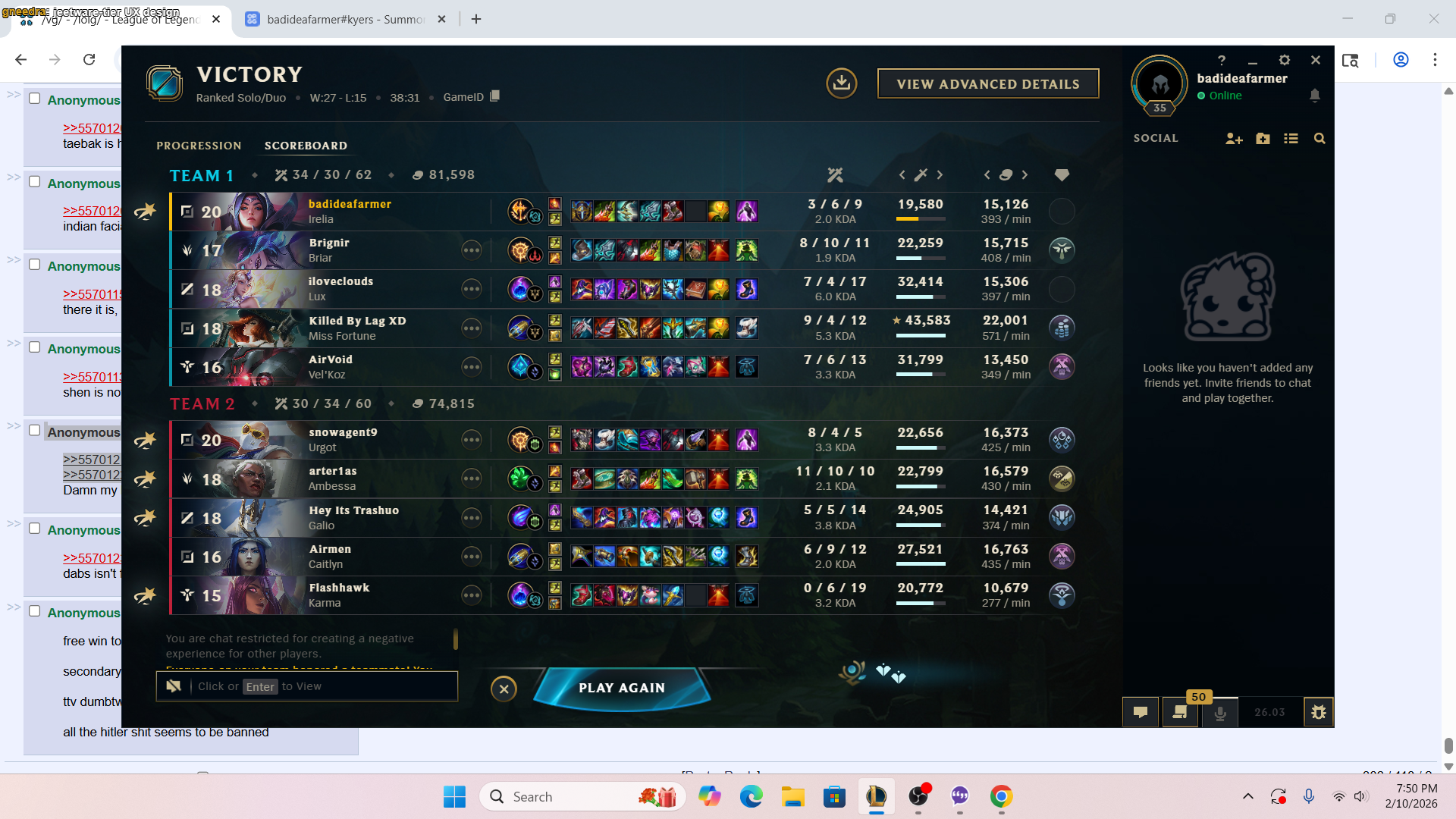 I play league to show off how good I am