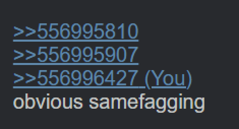 >>556997046It's clearly the same person posting on exact cooldown about the same deeply personal subject to them, which leaves exactly one educated guess even though we can't be 100% sure