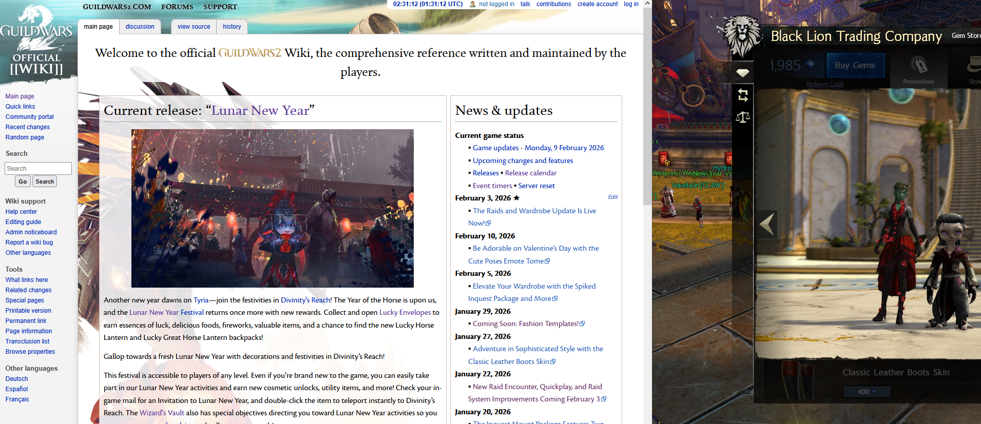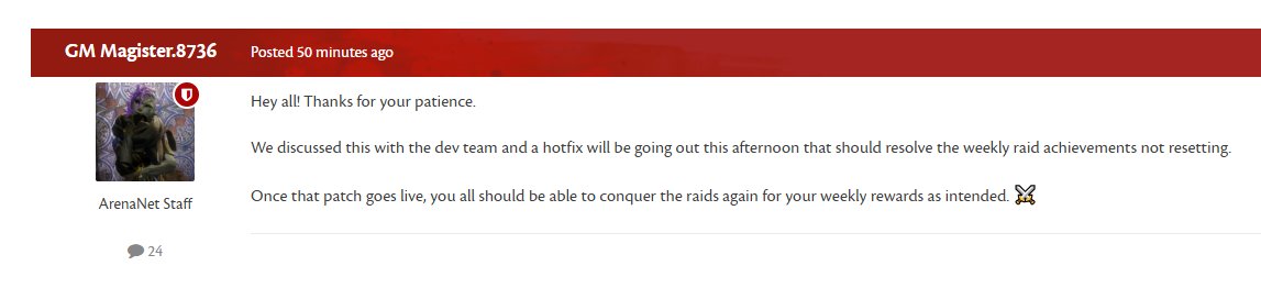 Tengu Tuesday Edition>Resources and FAQshttps://pastebin.com/ZU4uUREV>Guildshttps://pastebin.com/zCUYwWF0>Am poor! What do?DO THE WIZARD VAULT WEEKLIESDaily Checklist - https://fast.farming-community.eu/farming/dailyCurrencies - https://fast.farming-community.eu/conversions/overviewOW Farming - https://fast.farming-community.eu/open-world/overviewSalvaging - https://fast.farming-community.eu/salvaging/overviewhttps://gw2efficiency.com/Alternatively, get a fucking job and swipe.>My build is absolute shit! What do?https://gw2mists.com/https://metabattle.com/https://snowcrows.com/https://discretize.eu/https://guildjen.com/gw2-builds/https://en.gw2skills.net/>Events and Gem Store saleshttps://en-forum.guildwars2.com/events/>LatestVoE Staff/Spear leggyVoE Aquabreather leggyFashion Templates>Soon™GW3 (never ever)Two more VoE maps>NowLunar New Year Festival (Horse)Legendary PvE RingrAIDS QuickplayVoE Quarterly Release>Latest Patchhttps://en-forum.guildwars2.com/topic/167374-game-update-notes-february-3-2026/>Latest newshttps://www.guildwars2.com/en/news/the-raids-and-wardrobe-update-is-live-now/>Speed Relics for Turbogayshttps://www.elitepvpers.com/forum/gw2-hacks-bots-cheats-exploits/>Addonshttps://www.deltaconnected.com/arcdps/https://blishhud.com/https://raidcore.gg/Nexushttps://burrito.orthogonalprojects.com/Previous Wipe: >>556552168