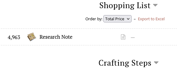 What is the cheapest method to get research notes? Some crafting recipe that can be instantly salvaged into notes?
