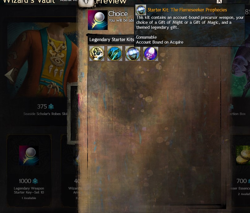 >>557334030>It kinda seems like they added a crafting track for making legendaries, but I feel like you just chucked shit in the Mystic Forge back in the day?At launch you had to craft everything, get lucky with the precursor drop and toss everything in the mystic forge. Later on they added an achievement quest line that would allow you to craft the precursor, too.Nowadays the launch legendary weapons are relatively cheap, precursors aren't that expensive anymore but more importantly, they're available from the Wizard's Vault for "free."The Wizard's Vault is the new daily/weekly system that works kind of like a battle pass from other games. You complete daily/weekly tasks that give you Astral Acclaim which you can spend on a ton of stuff. If you've bought the latest expansion, one of the available items is a legendary weapon starter kit that includes weapon and some of the other materials required to craft the weapon.