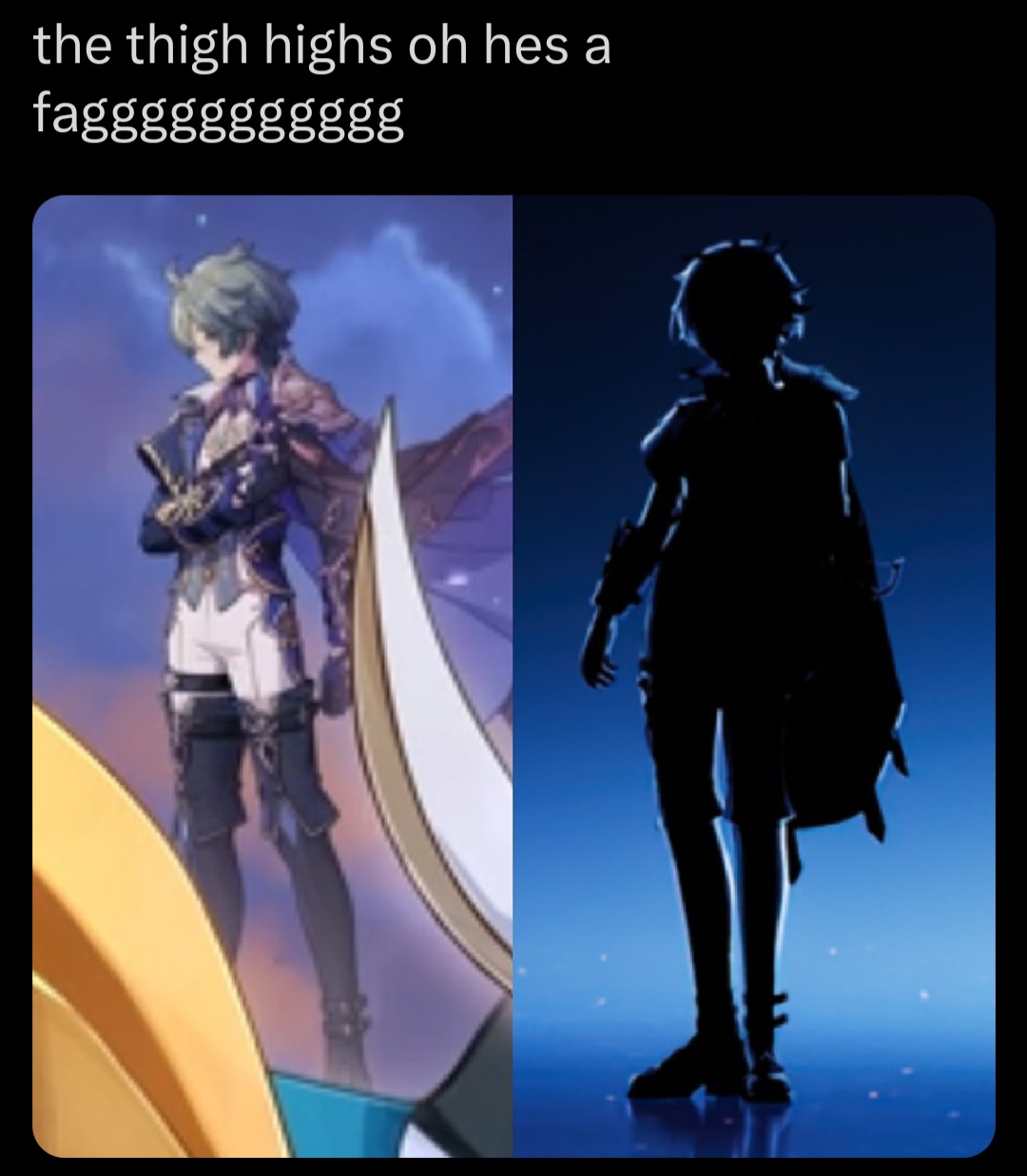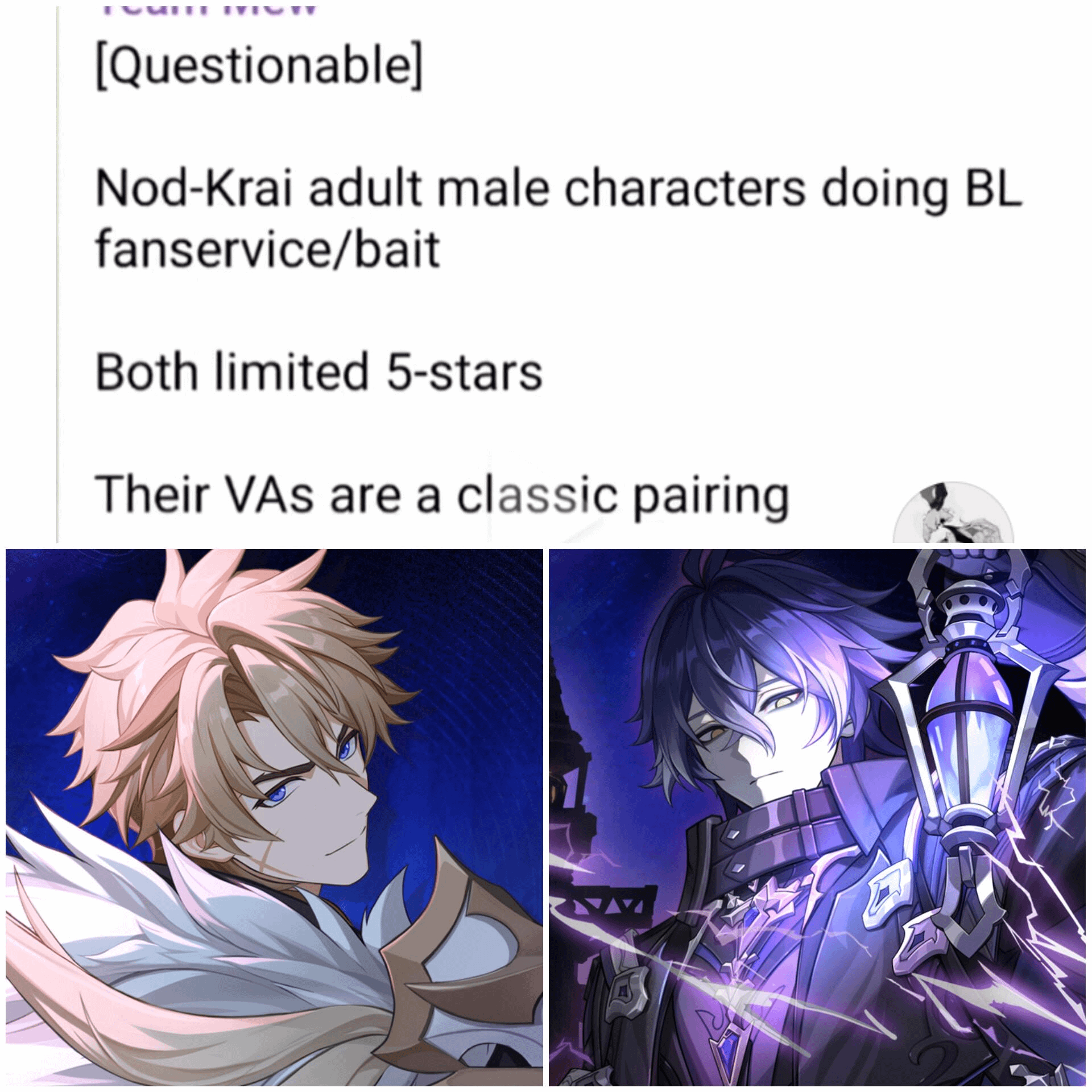 First, let's talk about "doomposting". It's the most rotten and worthless word this """community""" (genshin's) has ever picked up. Everywhere you go and anywhere you go, everything needs to be positive, positive, positive. Genuinely, there's no fucking place to even criticize the fuck ass company's decisions because these fuck ass whiteknights mass downvote anyone that doesn't follow their forced pleasantry.The overarching community behaving like this bad enough, but the people within the newer husbando subs are the worst of ALL. Idk where tf these losers have come out from but Flins and Varka's subs are filled to the brim with the most worthless fans I've ever seen. They cope relentlessly about everything. No amount of bs thrown from h*yo is enough to push their limits. Everything is always "fine" and "they have the numbers!", "they wouldn't ever do this!", "they have no reason!", "they don't hate male characters!", "what about Neuvilluete and Flins". Literally tell me why people are downvoted enmass in the Varka sub for saying that h*yo is sabotaging him??? I'm not even talking about myself here, but literally any time someone tries to break the cope they got hounded by the-ones-that-shall-not-be-named. I'm just so sick and tired of these fucking losers overtaking the husbando subs. Genuinely when will it be enough to break these people's stupid cope? Like omg bruh his ass is NOT GOOD.I'm liking Nod Krai overall so far (aside from Columbina's schrondinger's waifu-bait), but I just hope the future husbando subs aren't like this. I don't want the men catered to straight men anymore. It's sickening. Also, lowkey did the fatui lovers just like drop the game or smth? I feel like at least they, especially Capitano mains, would've been a better audience than these people.