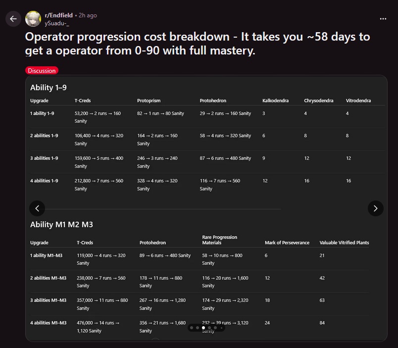 >start seeing this 58 days to max a character being thrown out too often in the thread>its a reddit post>58 days implies M3 on ALL skills which is borderline retarded>that goes down to 28 days for level 90>and probably a week for 80/80 which is where the majority of units will stop at except hypercarry DPSis this the new doomnigger tactici'm nyoticing