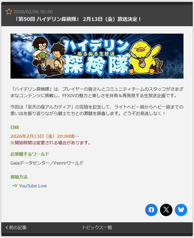 >Patch 7.41 Noteshttps://na.finalfantasyxiv.com/lodestone/topics/detail/fa89e48b03a6bf6deac50a23fdfc39f7df64fb2a>Valentione's Day (Monday, February 2, 2026 at 12:00 a.m. to Monday, February 16, 2026 at 6:59 a.m. (PST))https://na.finalfantasyxiv.com/lodestone/special/2026/Valentiones_Day/wenbvnlh6s>Resourceshttps://rentry.org/xivgresources>Meetups• Feburary 11, 9:00 PM EST | Primal, Famfrit, Lavender Beds W15 P20 | Spooky Club: Valentines Day Depressing Anime Movie Meet up >>556786219 • February 13, 08:00 PM EDT | Excalibur, Goblet W28 P5 I choo-choo-choose to do a Simpsons Valentine's Marathon this Friday >>557026905 • February 14, 7:00 PM EST | Mateus, Goblet W22 P19 | Valentines Matchmaking Meetup >>556256320• Feburary 14, 9:00 PM EST | Materia, Bismarck - Ul'dah - Steps of Thal ( 11.3 , 11.2 ) | Valentines Mixer Meet! >>556235941• February 14th, 3:00 PM EST | Mateus, Goblet W22 P19 | Valentines Movie Meetup - BLACKkKLANSMAN >>557006378• February 21, 6:30 PM EST | Materia, Ravana, Empyreum W24 P21 | Male Meetup - The Grand Budapest Hotel & The Phoenician Scheme >>556283751Previously: >>557033204