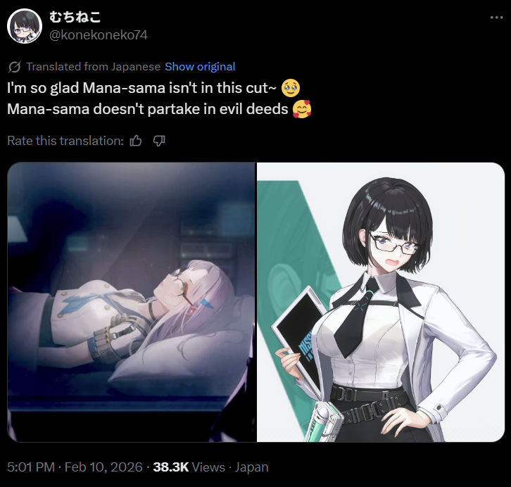 The cope from /u/cuck on X (formerly known as Twitter) is pathetically delicious >wow She has stun, damage taken debuff and buff Vesti & Ada's true damage... high deficit campaign might get easier by using HerDo you know who else that has longer duration AoE stun, gave high atk buff which more useful against multiple waves enemies in campaign compared to damage taken debuff & true damage since most of mobs, even the so called tanky one, in campaign has low deff stats but high HP and soon the said character will get treasure upgrade and most of you probably already have Her at core+7?Yes our Glorious Glowie Miku!