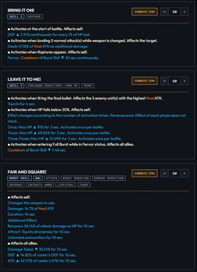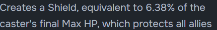 >>557066304Centi changes>S1 - Shield auto triggers at start of battle. Heals party 9.7% of her Max HP when shield is popped.>S2 - Shield goes from 6.38% of her Max HP to 7%>Burst - Max HP up 5%>>557068064It should be better than it looks at first glance. She is healing 9.7% of a Defenders Hp every time the shield pops and you start the fight with the shield up and she will refresh it every ~5s. Should make her stronger in PvP.