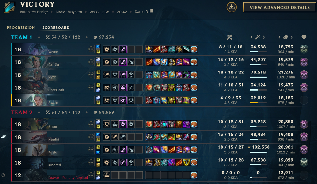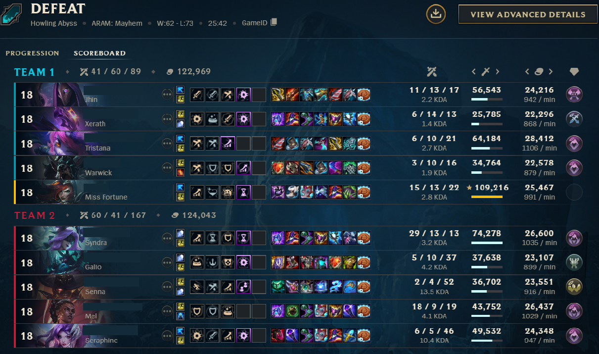 ARAMs problem is that it doesn't have ENOUGH rng unironically, it's way too easy to essentially draft a minimum A tier comp unless all 5 of you somehow manage to get supremely unlucky, but at least one team will always have an amazing comp. They added way too many safety nets and I'd rather have the occasional game of having to play shit like trynd if it meant I didn't have to see shit like xerath/zilean/galio/samira/etc 9/10 games, or in the case of mayhem, playing the "which team got the most adcs/who got jinx and/or vayne and auto wins the game"