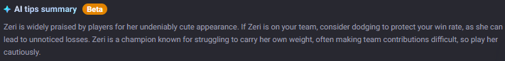>>557106531Still an S tier champ with a 52% win rate. She does good damage and can easily chase if you land your shit, pure skill/build issue on your part mate