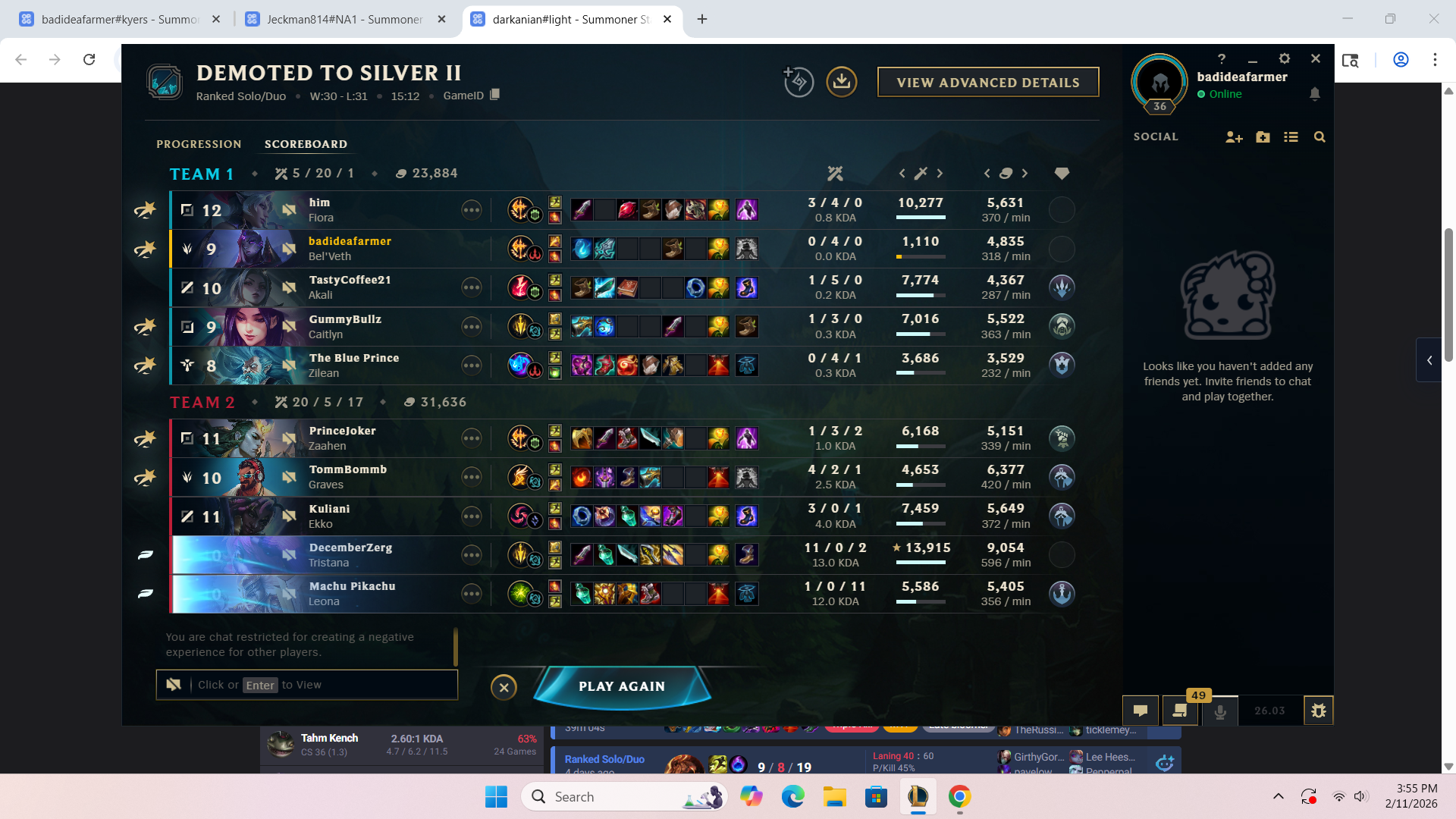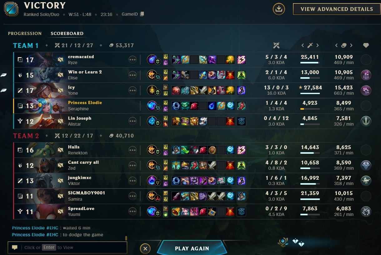 good run. gonna do the thing where i int mid and get the acc banned now.