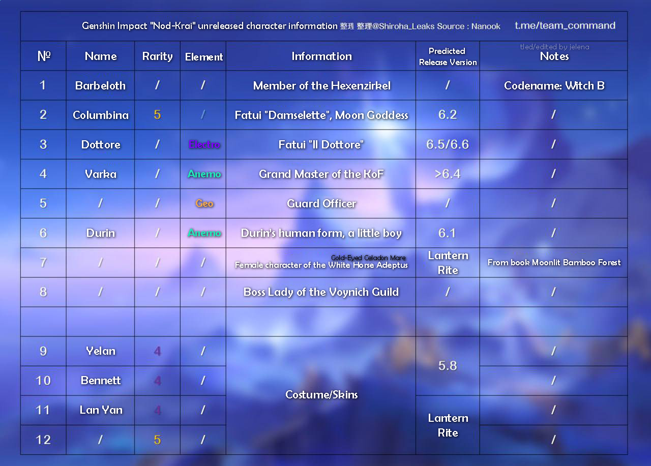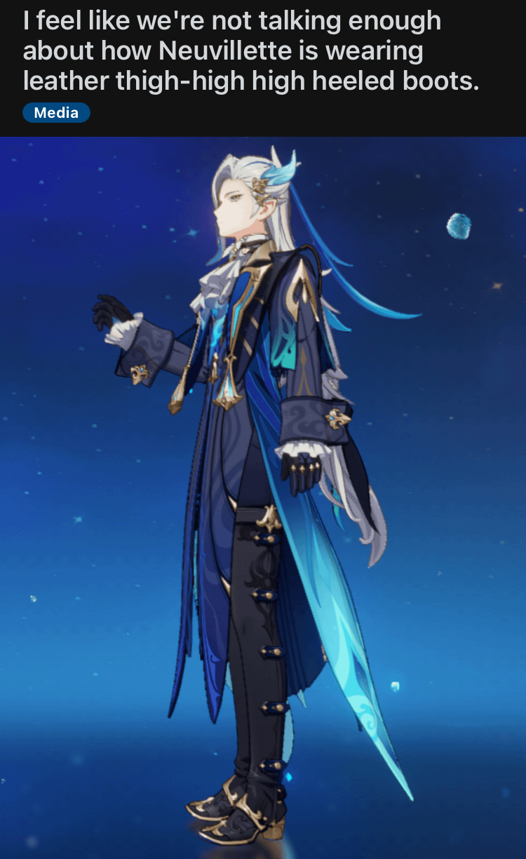 Previous: >>557035310 >Character Trailer - "Zibai: Mortal Flesh to Kindred Earth" https://youtu.be/6iE9Gwiuz3E (EN)https://youtu.be/t4xEbesXXtg (JP) >Character Trailer - "Illuga: Shimmering Plumes of the Dawn Oriole"https://youtu.be/qoF5VjO0_iE (EN)https://youtu.be/sCPfCRuInAc (JP) >Character Teaser - "Zibai: As Drifting Wayside Dust"https://youtu.be/uFKQL6xPbRU (EN)https://youtu.be/1Y3Q1xNktU8 (JP) >Current character banner: Zibai, Neuvillette, Illuga, Aino, Gorou>Current weapon banner: Lightbearing Moonshard (Sword), Tome of the Eternal Flow (Catalyst)https://www.hoyolab.com/article/43195205 >Daily check-in rewards (permanent)https://webstatic-sea.mihoyo.com/ys/event/signin-sea/index.html?act_id=e202102251931481&lang=en-us >Redeemable Codes with Primogems (all regions): https://genshin.mihoyo.com/en/giftGENSHINGIFT8X73KH58KDHNP3GXX56W3VG9 >Useful Links (Wiki, Simulators, Maps, Character Builds, /gig/ friendlist, Third-Party Tools, etc.)https://rentry.org/giglinks /gig/ OP pastebin (use this if making new thread):https://pastebin.com/ca0zseQ9