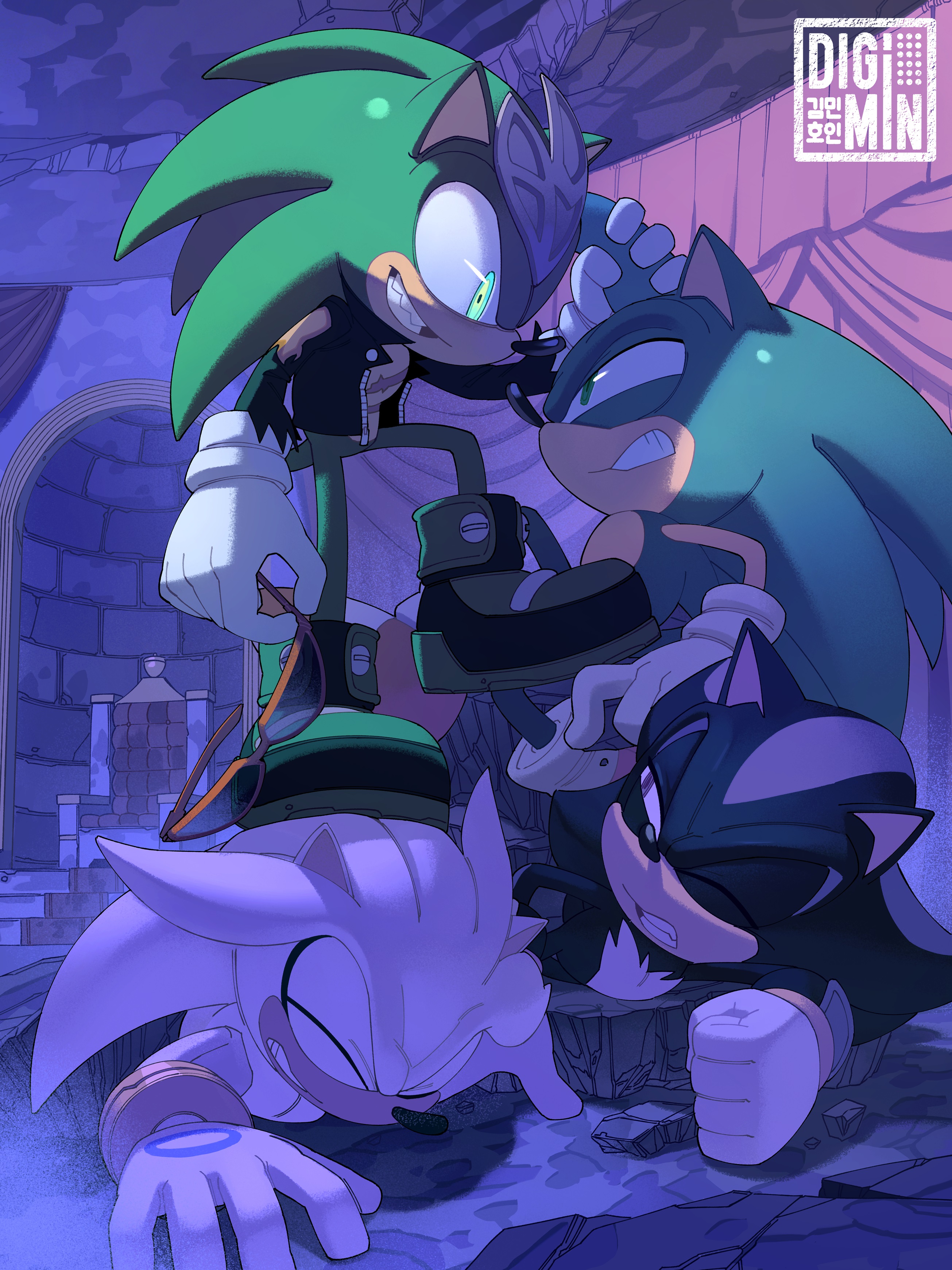 Ashura, Scourge, ManicWhich green do you take?I'm leaving Surge out, she's not a hedgehog.