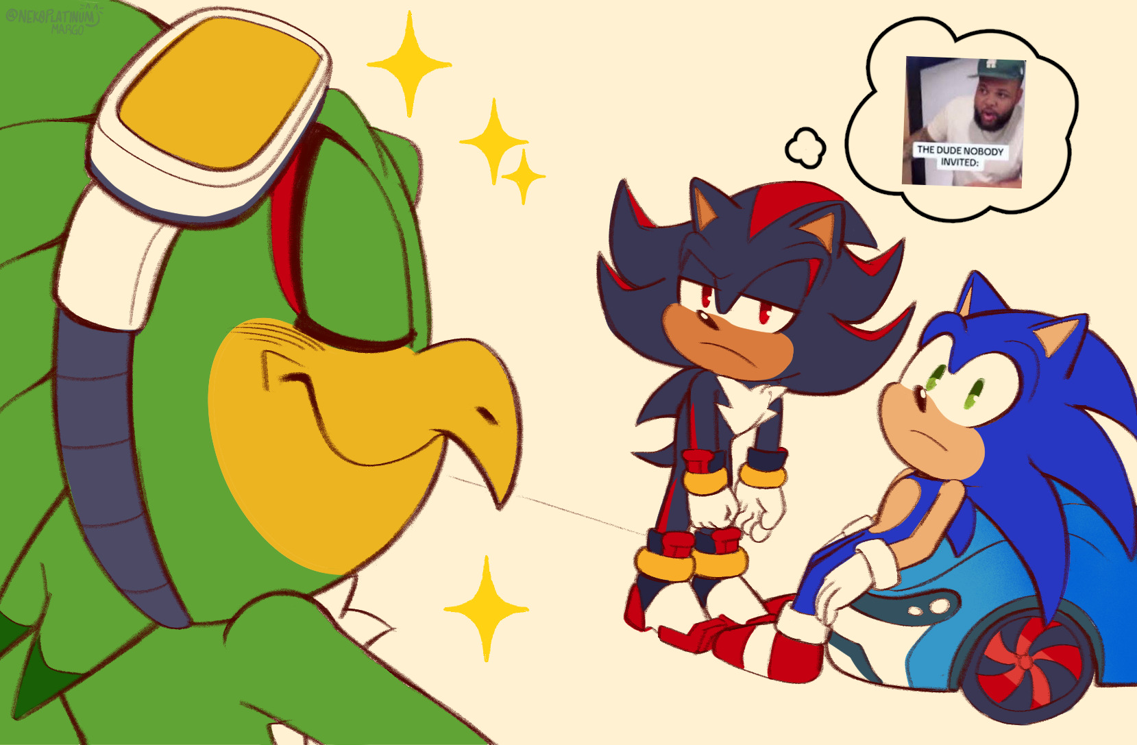 >>557090625We’re only ever allowed to see them do anything if Sonic is involved. They could easily be good friends offscreen but we’ll never know because fuck you