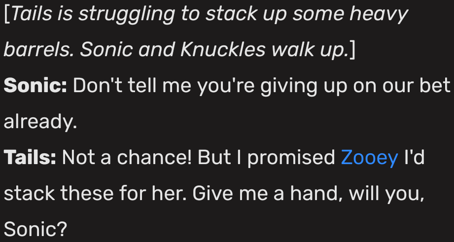 >>557116236The thrust to manipulate. Note how she's speaking FOR Sonic to convince Tails to come to her house.