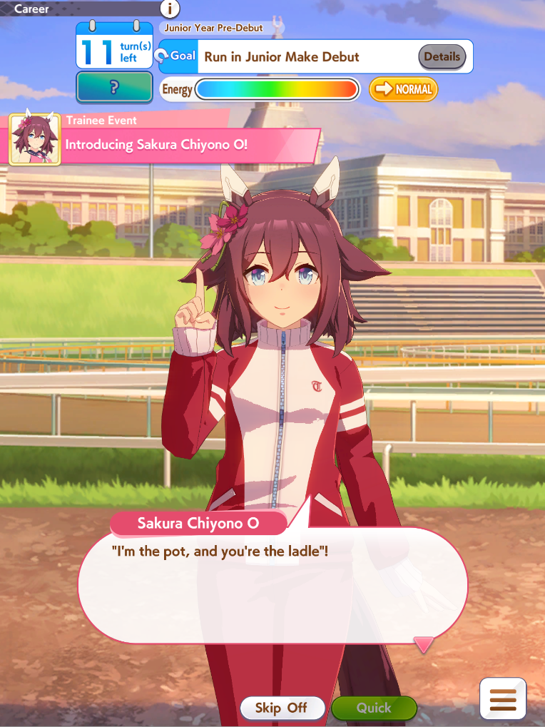 Remind for you all to treat your uma properly:DO NOT use Pal cards when you're playing an uma that wants the trainer so bad (Nice Nature, Super Creek, Mayano Top Gun, Mejiro Mcqueen ecc...), they want to marry you, they find you as their proper partner, so DO NOT break their heart and seek for another (inferior) partner.DO use Pal cards when your uma is not interested in you, DO NOT seek out for the Uma who has NO love interest in you, yes even Bakushin, no matter how her pit is good and how much you want to lick it, she has NO ROMANTIC interest for the trainer.