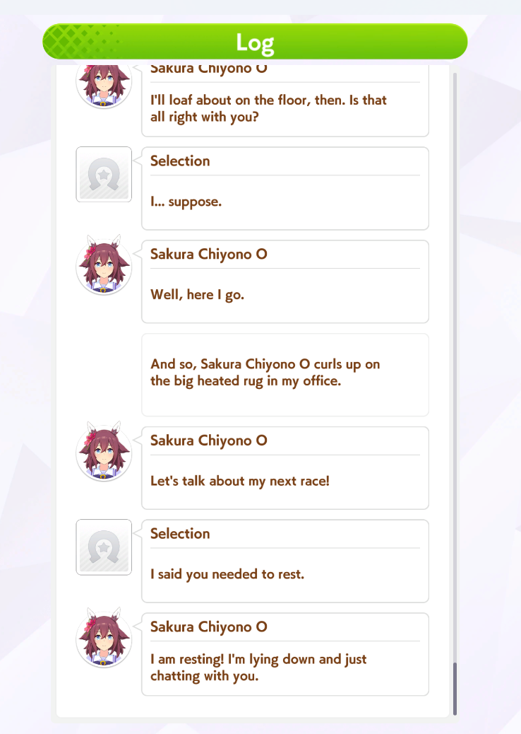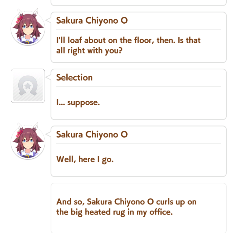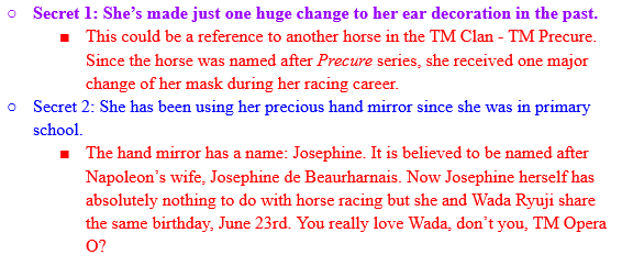 >>557091897Feeling very gay right now>>557091996The Mihono Bourbon branch is wrong, her dream of getting the triple crown came from seeing it on TV if I remember correctly