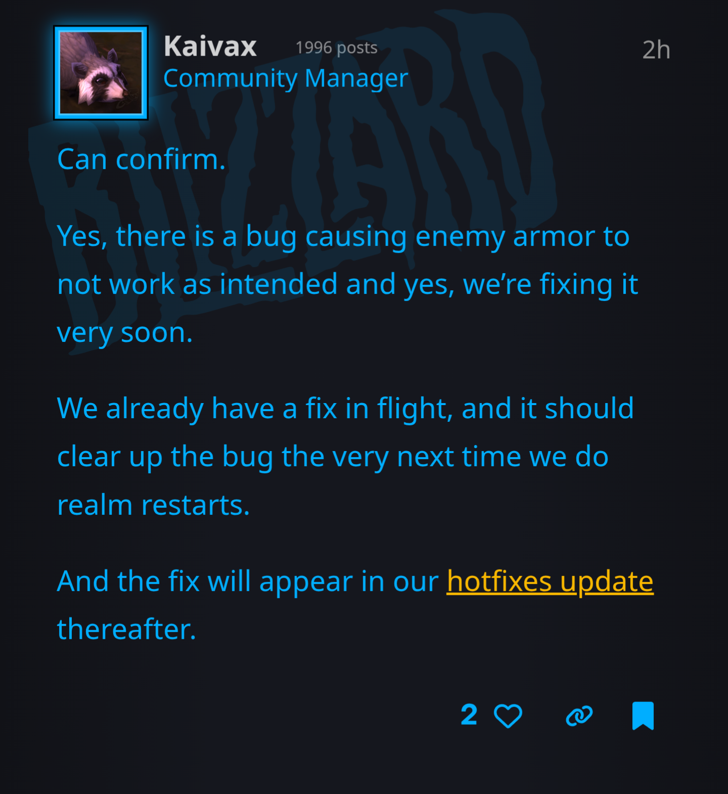 >>557219180he doesn't play it, so he has 0 idea of what the game needshe hasn't played retail over 4 yearshe hasn't played classic over 6 years after getting bullied out of his favorite game