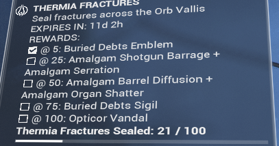 >>557162049>Amalgam Serrationfffuuuuck I knew I was forgetting something I was supposed to farm thermia for the 2 amalgams