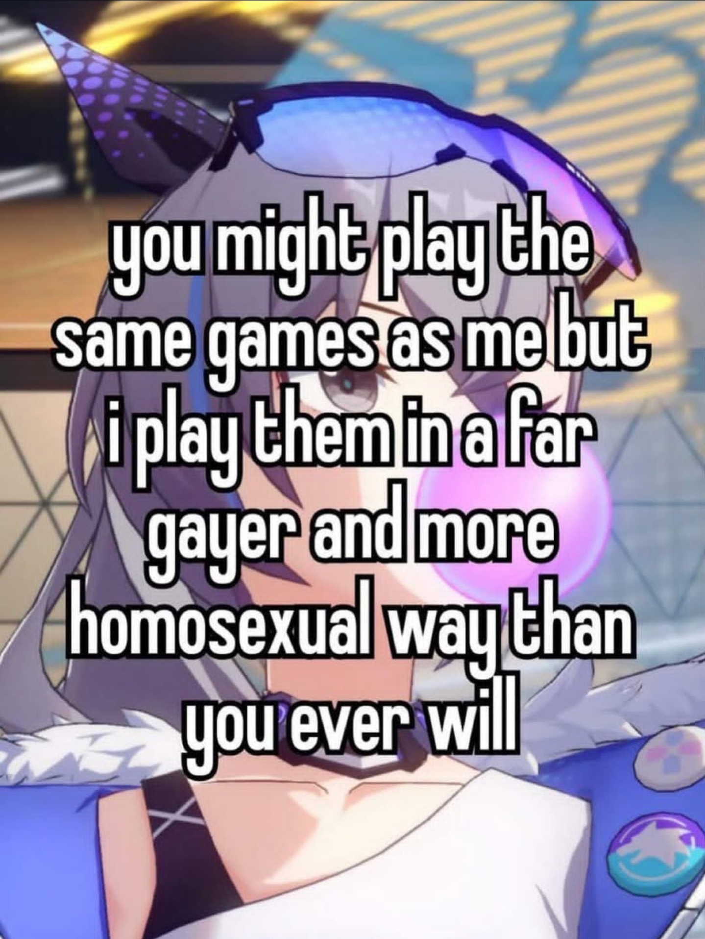 >>557112838>>557113435Just don't hinge gacha rewards on playing chess. People buy a subscription/pay for individual pulls for girls and high ticket items. Maybe get some small rewards for daily logins, completing certain challenges, etc.That way you can have a normal chess client with online play versus other people without cheating being incentivized anymore than it all ready is.