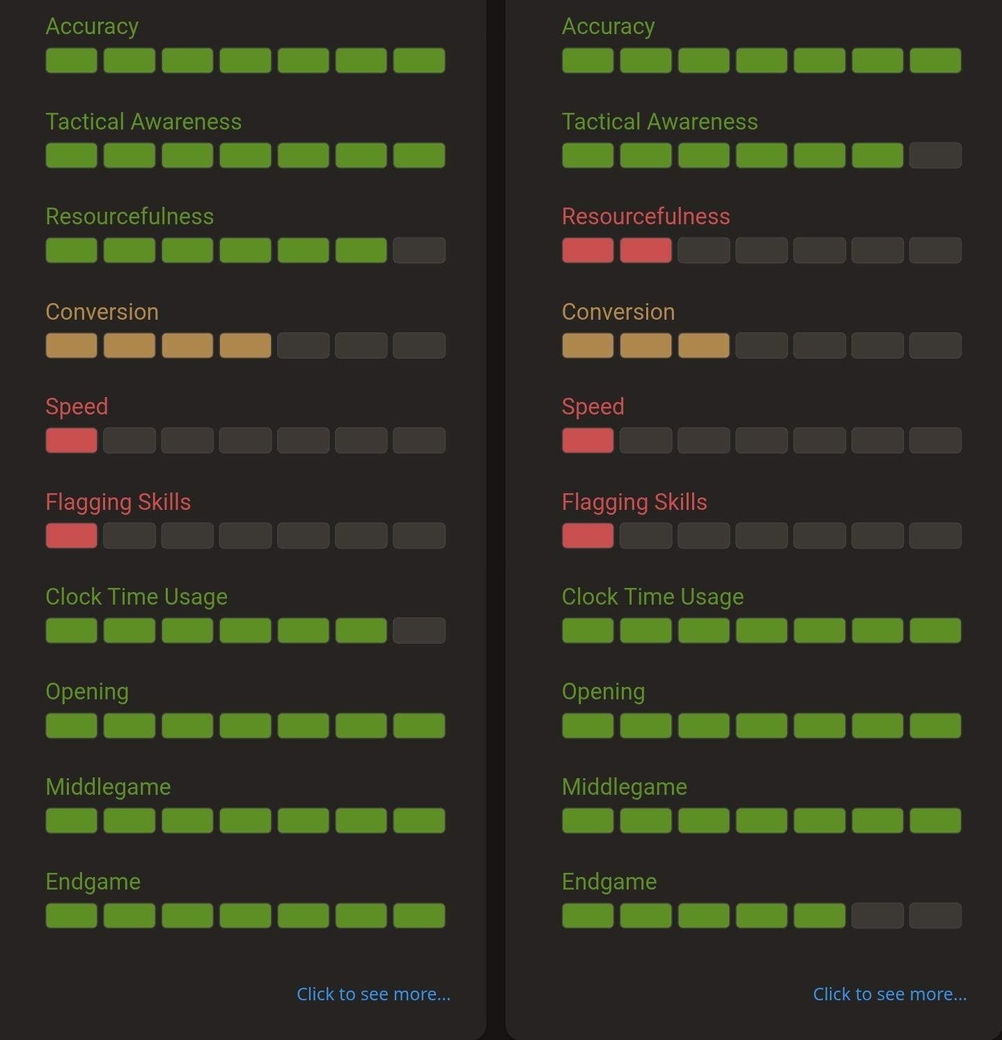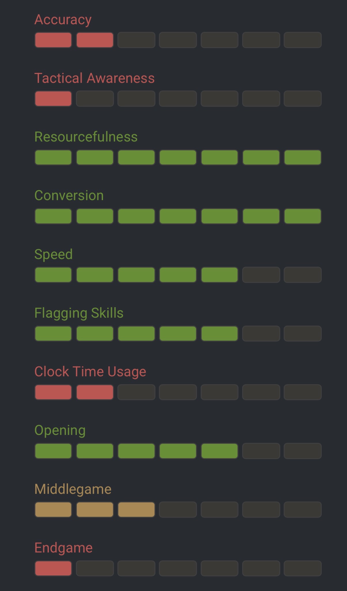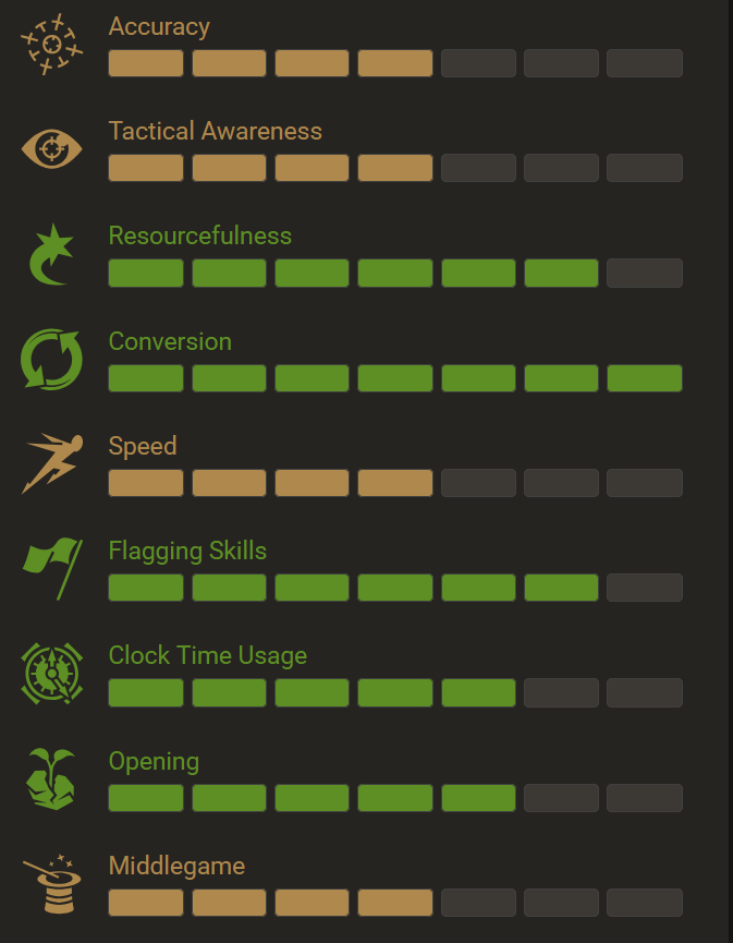 >>557160705Yeah I played one game as white and one game as black 10+0 time. He just wanted to see what coach would fit me best. They gave me their in house rating of “bishop” lmao and it’s pawn/knight/bishop/rook/queen.