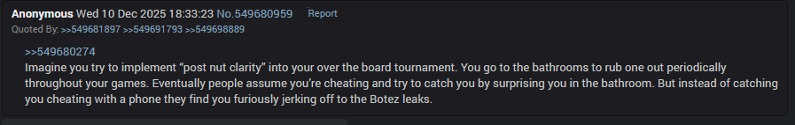 >>557128957I don’t believe in that /chess/ legend. It’s too horrific to think about.