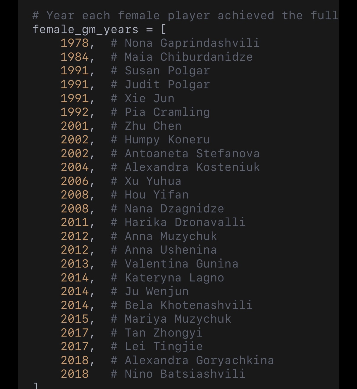 >>557985719Boys get groomed into chess from a young age all the time. It's very very common.Hardly any women play the game. Imagine if girls got groomed into chess at the same rate as boys.Literally one of the first woman who ever got groomed made it into the top 10 and beat supergms. This proves a women's brains can get to 2700+ levels if they start young. Now lets groom thousands of girls, just like thousands of boys have been groomed into chess from a young age.The only reason most of the top player are men is that most chess players are men.Imagine a game were 1 million players in the world are male, and 1 player is female. What are the chances of the female player being the top. Chess is like this, except the ratio is probably more like 1:100, which is why theres usually one female close to or in the top 100 at various points in time. For example hou yifan made it to 55 in the world.Now imagine it was 1:1 ratio of serious female to males playing the game.