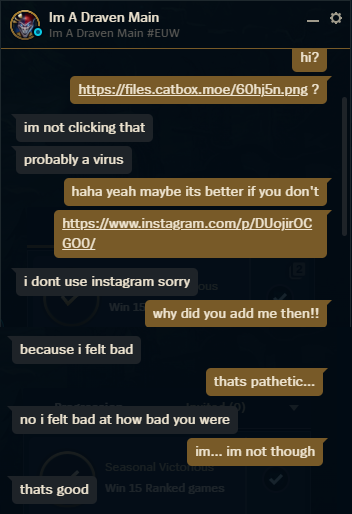 on the rift im MIDLANERAPIST#KYS but irl im so :3 and bleeehhhh