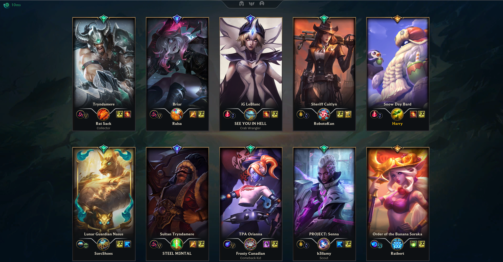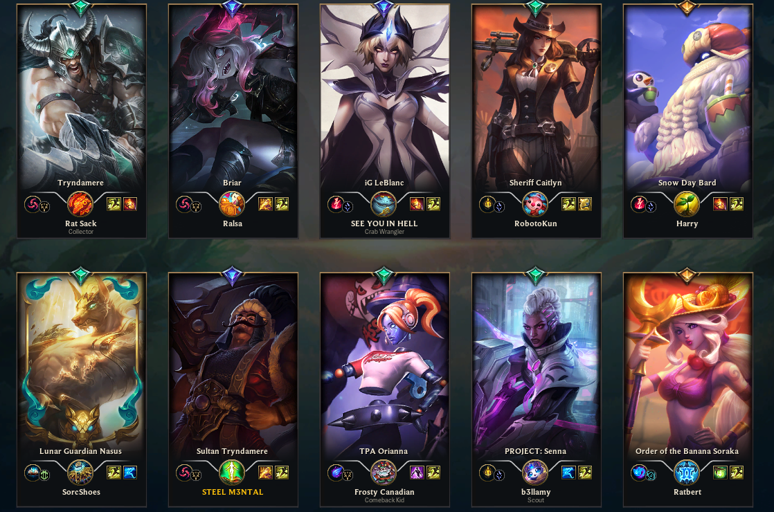 >>557113502No Supports will solve this, at most you wait until level 6, and then begin to perma roam if your ADC isn't doing anything. Mages aren't very good right now anyways. >>557113517Idk if my team doesn't give me last pick I'm just going to lock in Sona, because Rakan and Senna aren't blind pickable currently. Then my team can cry if we get countered hard or not, it's not my problem at that point. It's kind of troll to not allow your Support to counter pick - if they know what they're doing, when they will dictate if three (3) people get to play the game or not. This doesn't mean last pick all the time either.