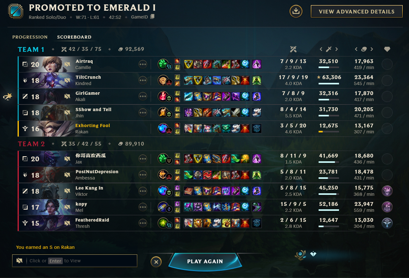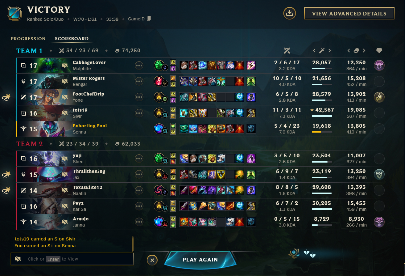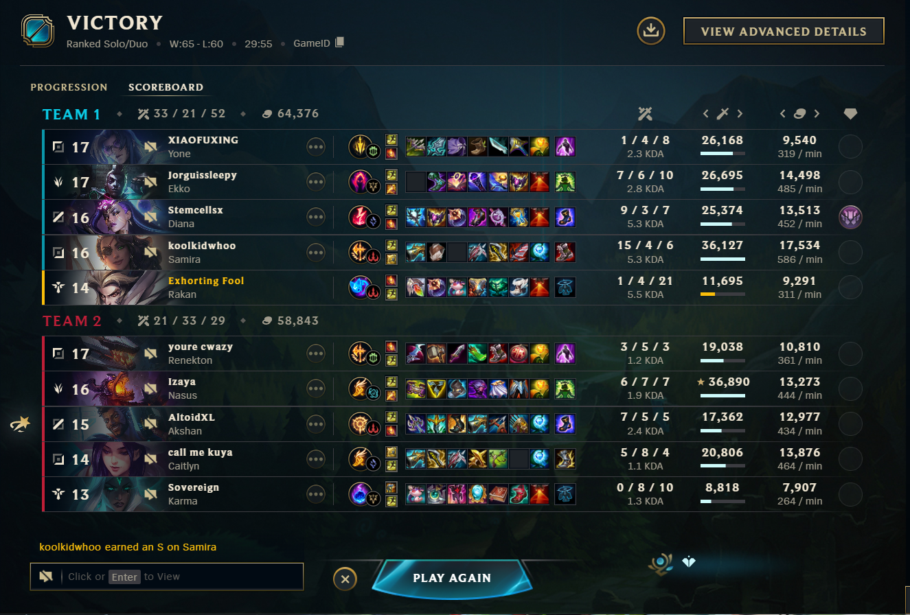 >>557165346I dont care about reaching masters and dont want to though.I got d4 as toplane again and tje game was>enemy slowpush>sejuani turretdive>freeze>enemy slowpush>lissandra mid poimtclicl turretdive>repeat with sejuani>my jungler camps bott>win game 0/12 5 lvls downWow. I had so much fum to blindpick anything other than fatass, orrn or orrn