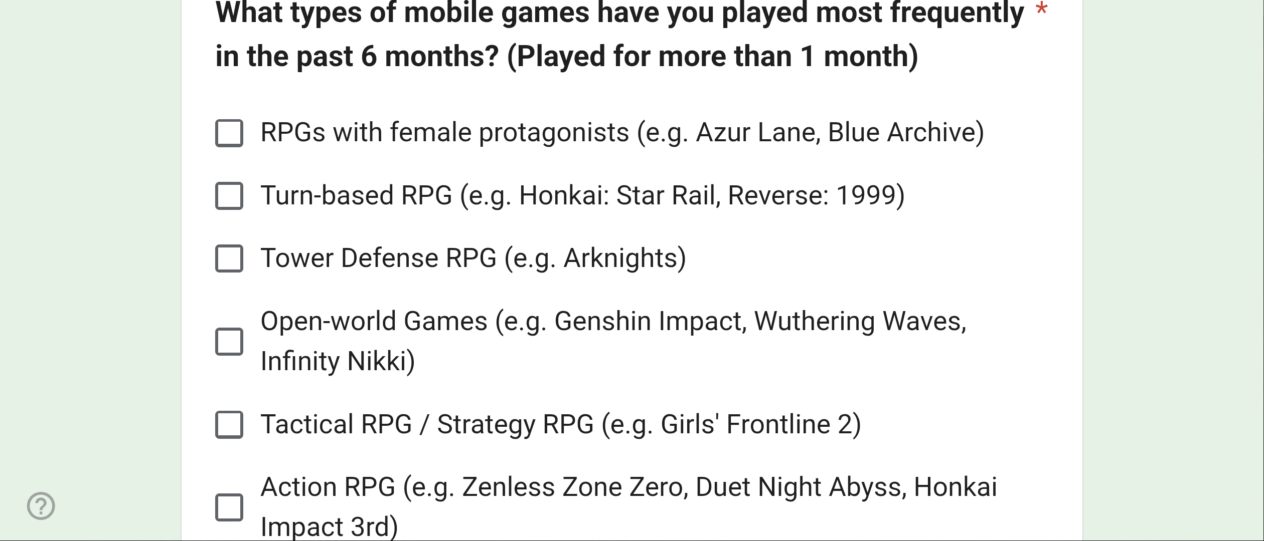 >>557129076maybe, you can suggest something randoma t the end as usualbut there are alot of gaming habits questions