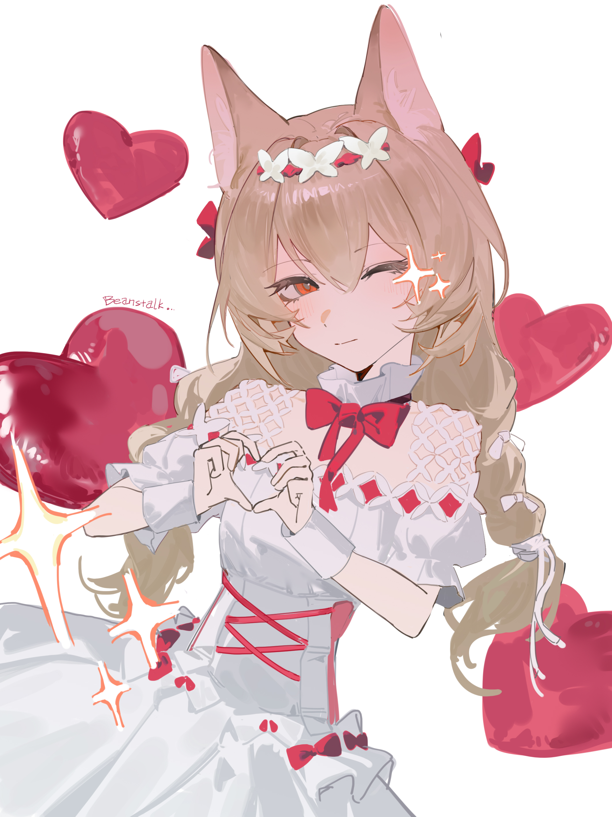 >>557141908Ribbon Promise - New Arrival from the Bean Sprout Awaits the Crown of Flowers Series/Ribbon Promise. A dress for a bean sprout attending a festival banquet. A pure white trailing dress adorned with magnificent red accents, the flowing ribbons making the young girl even more lively and adorable._____________There are many ribbons for Peacake to play with, but she will hold the one that truly binds the eternal promise tightly in her own hand.