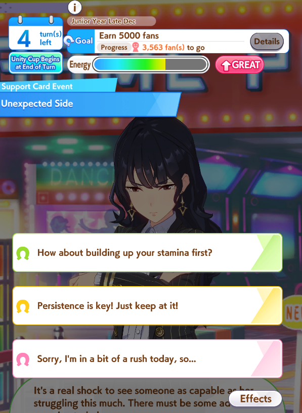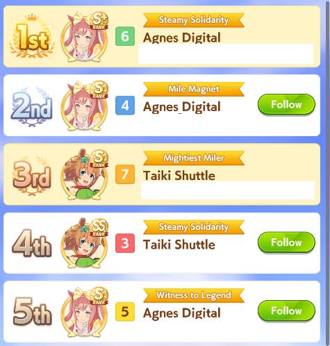 >Global Game NewsLink your account to Cygames iDCurrent Scenario: Aoharu Hai aka "Unity Cup"Current Rate Up Trainee: New Year's Scout (3*)Current Rate Up Support Cards: New Year's Scout (SSR), SSR Sasami Anshinzawa (Pal), SR Tamamo Cross (Guts)Current CM: Capricorn Cup - Chukyo Turf 1200mMain Story Chapter 5 is out01/27 - New Beginnings Part 101/29 - NY Opera & Haru 3*+Fuku SSR+Ayabe SSR02/05 - 02/12 Racing CarnivalMid February - Capricorn Cup - Chukyo Turf 1200mhttps://umamusume.com/news/100040/https://pages.snep.pw/uma/anni-skill-changes/>JP Game NewsCurrent Rate Up: Valentine Taiki Shuttle (3*), Valentine Sounds of Earth (3*), SSR Matikanefukukitaru, SSR Neo UniverseNew Scenario "Yukoma Hot Spring" releasedTimeline: https://uma.moe/timelineCygames Webstore: https://webstore.cygames.com/en/umamusume_en/>Thread Clubshttps://rentry.co/umaglobalclublistYou must be E3 (20k points) to join a circle. Apply with /uma/ or /vg/ in your profile or post ID in the thread.>All Guides & Resourceshttps://rentry.org/uma26Game databaseuma.guideComprehensive guide, still in progresshttps://gametora.com/umamusume (Click the gear to switch between JP / global server info)A basic guide for newfagshttps://rentry.org/umaglobalFind networks if your region is blocked from the game or clienthttps://www.umavpn.top/93Seiyuu & Concertshttps://rentry.org/umstUma Texthttps://umareader.idsmile.xyz/