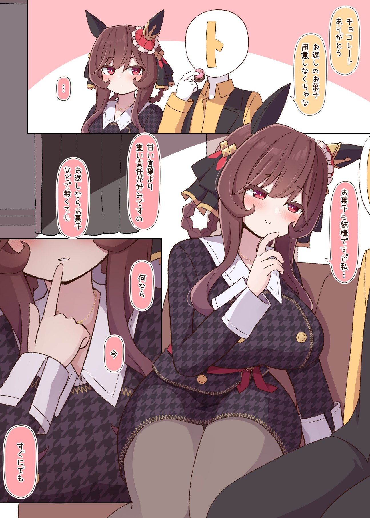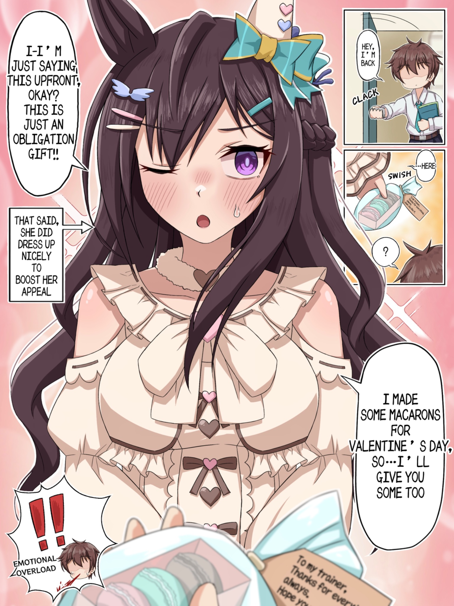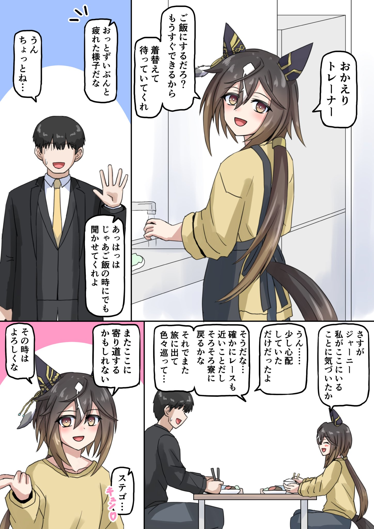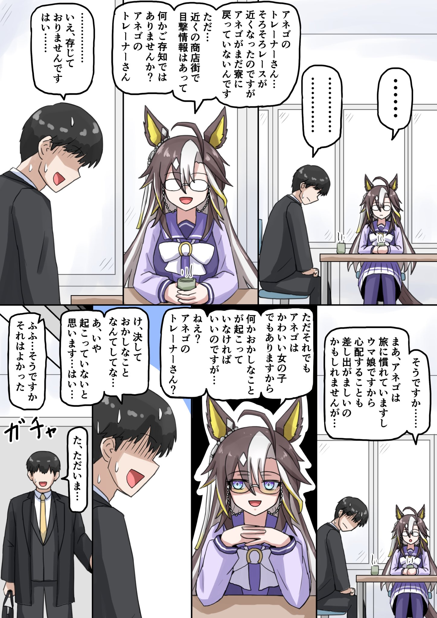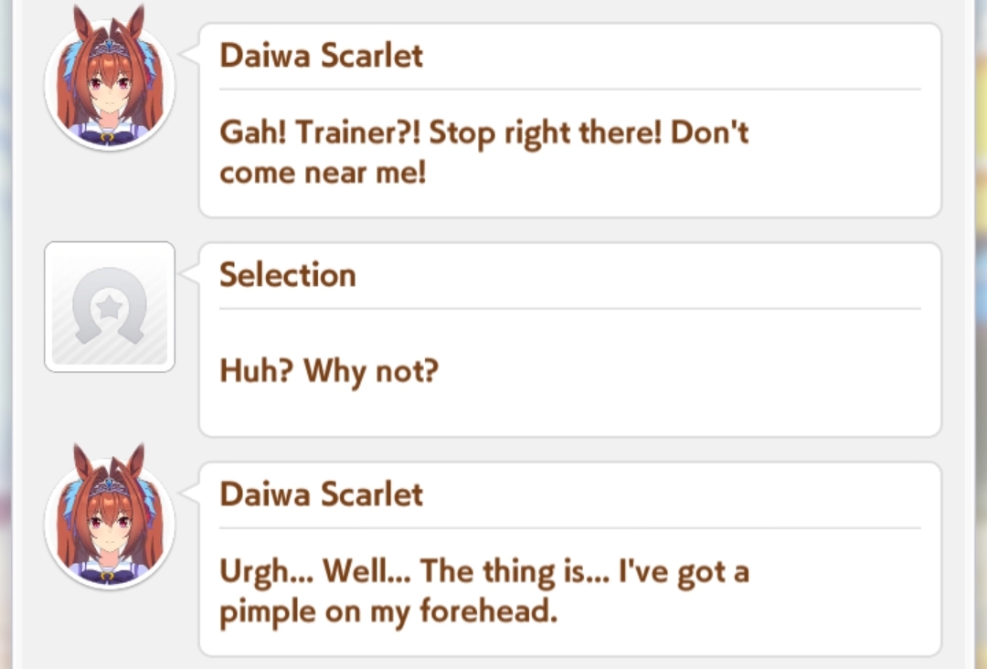 Reminder for all Trainers:Umamusume can be in heat, in those cases you, as her TRAINER, have to be extremely cautious depending on your intentions with your horse. For race performances purpose is advised to satisfy your horse's urges. Even if this implies to use your body, but watchout, she is NOT human. She is far stronger and have more stamina, you may not survive, ESPECIALLY if she has ROMANTIC interest in you.Take extremely care of the horse you are training, they need affection and attention too, do not give them too much or they may fall in love with you, and if that's not what you want, it may damage your horse mood and so her perfomance in races.