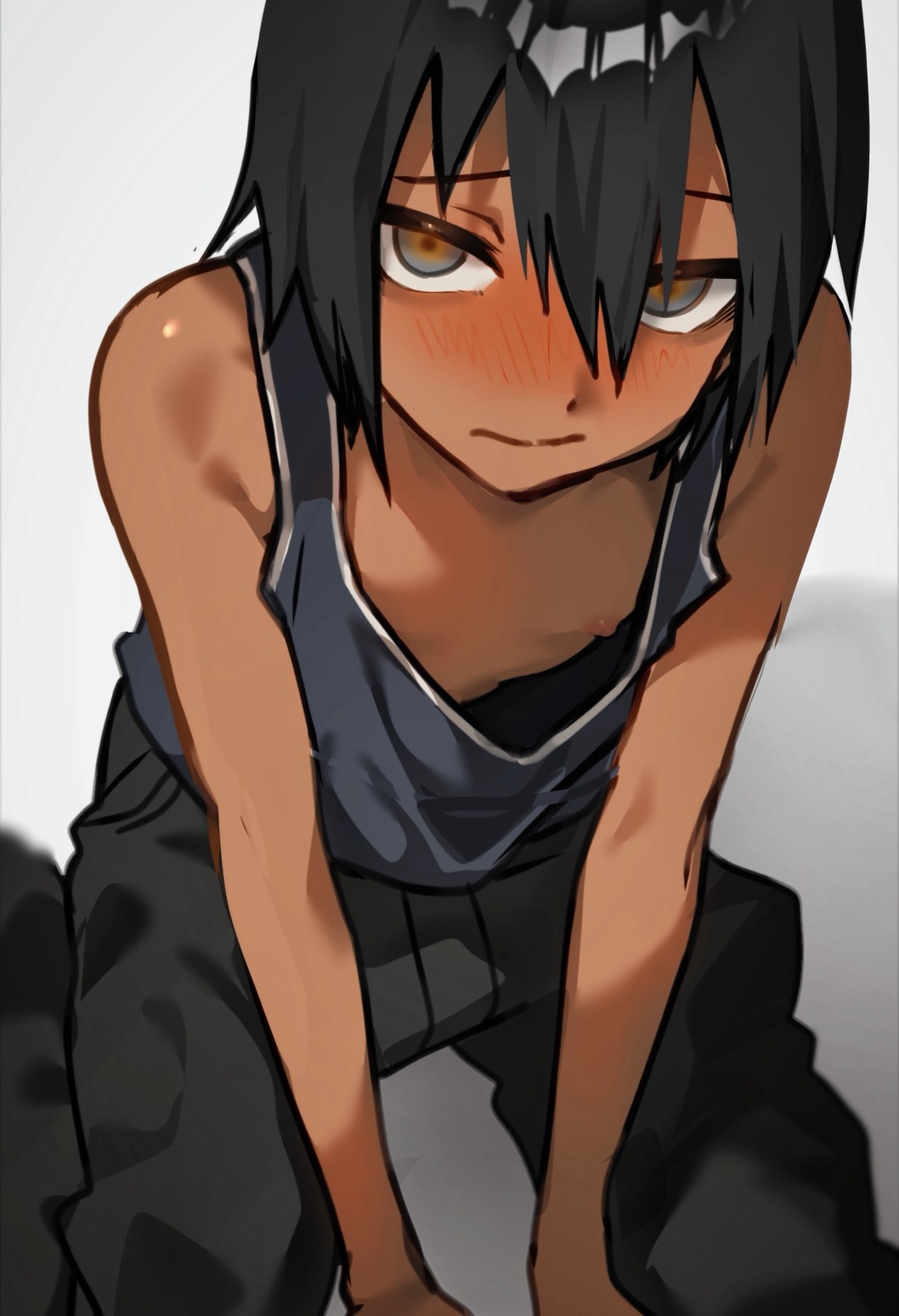 imagine: sweaty kris with bikini tan lines in only shorts