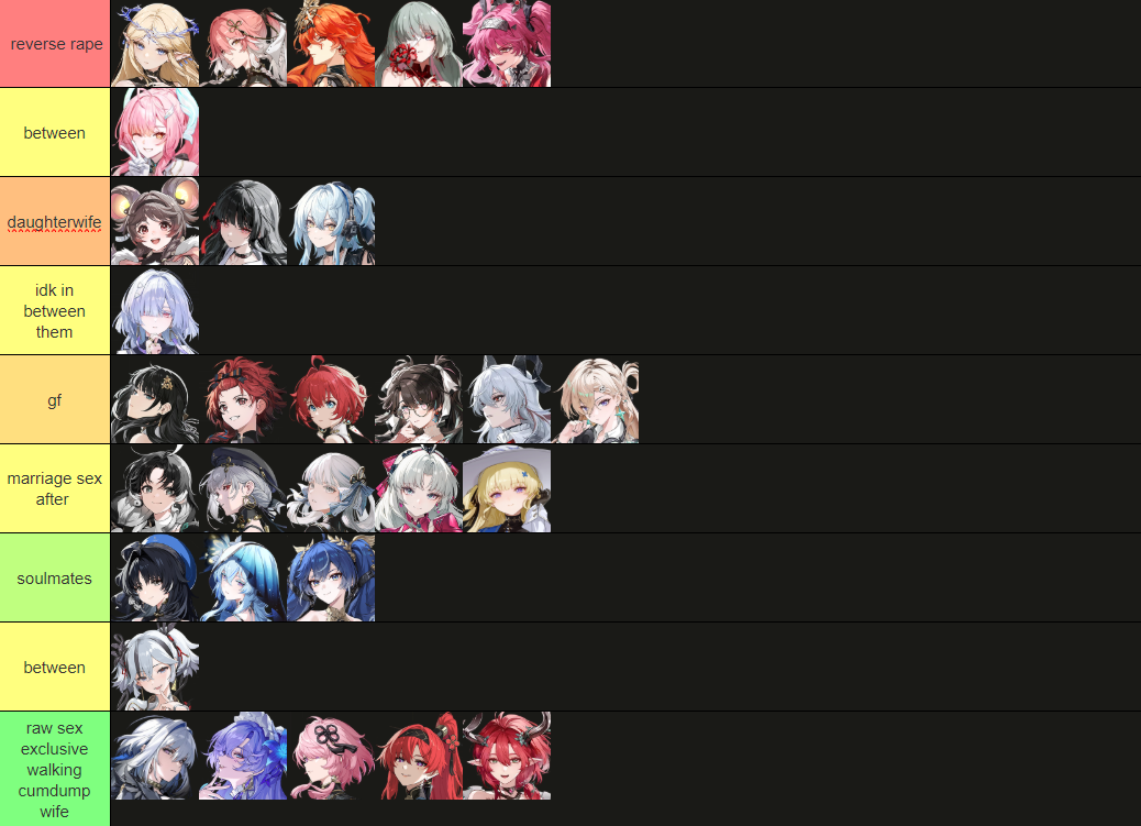 >>557169912I don't know how much worse she is, but I'm running lupa changli aemeath and this team clears everything. It's also fun as hellall s0 and only aemeath has her sig