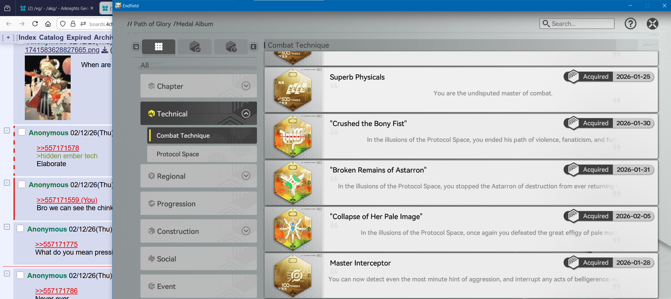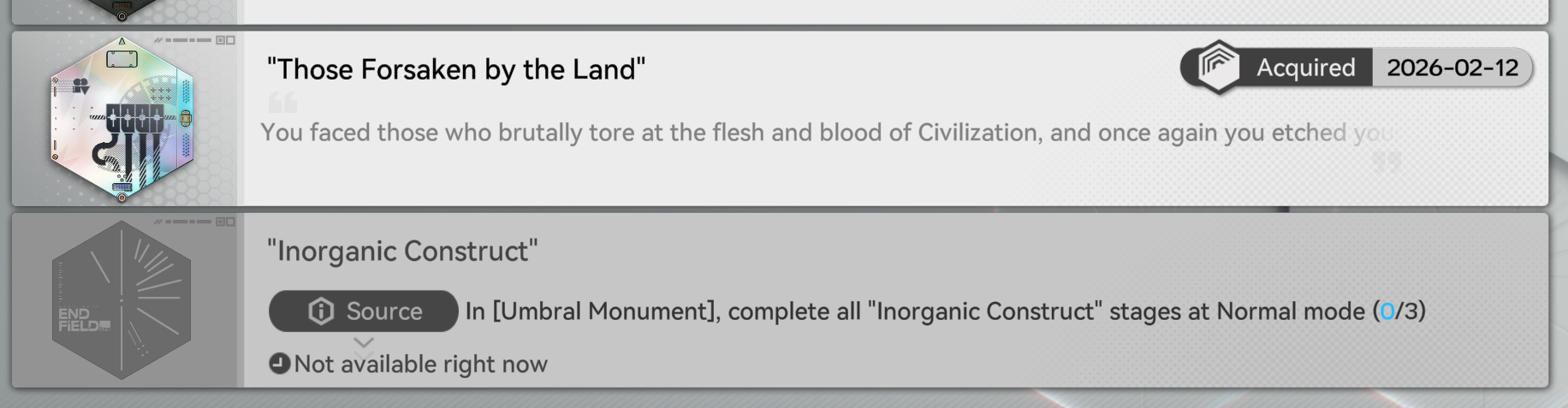 Endgame is upon us editionPrevious thread: >>557157574>Official Websitehttps://endfield.gryphline.com/en-us>Official EN X (News)https://x.com/AKEndfield>DEV Comm (Developer Updates)https://endfield.gryphline.com/en-us/news/3846>Gilberta PV'shttps://www.youtube.com/watch?v=8hZVxeiSmQ4 - EP [Snap Shot]https://www.youtube.com/watch?v=BQom1V9TdbM - Operator Storyhttps://www.youtube.com/watch?v=h70w5ZmXLkE - Combat Demo>Chartered Headhunting ScheduleFebruary 7th to February 24th --- "The Floaty Messenger", (Gilberta)February 24th to March 13th --- "Hues of Passion", (Yvonne)TBA>Reward CodesENDFIELDGIFTENDFIELD4PC>Twitch Dropshttps://endfield.gryphline.com/special/third-party-binding?channel=twitch>Voyage to the Stars (Ongoing until March 4th)https://endfield.gryphline.com/activity/voyage-to-the-stars/en-us/>Wikishttps://wiki.skport.com/endfield (Official)https://perlica.moehttps://warfarin.wiki/enhttps://endfield.wiki.gg/>Blueprint Guideshttps://talospioneers.com/en>Stickershttps://drive.google.com/drive/folders/13KH3L6QPIKkVH7pBddv4uxwmwJsnOtklhttps://drive.google.com/drive/folders/1OuVtjv1k-9c3M6n7d4PX3CGG5bkwH04ahttps://drive.google.com/drive/folders/1AStB8bzFk3lSwMwczWPkFYCBrZe0vHOghttps://drive.google.com/drive/folders/1yS0lqUhxf8tBRtpDFfCU1y16IS2sSeF7>Fr/end/sSubmit your info, /end/min:https://forms.gle/Fo7BhZMKaKqiWyL19View other /end/mins:https://docs.google.com/spreadsheets/d/1YtxiDss0hgEQhLlZgpfzyGrJrzUcqDzOS9T6IH-BiVc/edit?usp=sharing