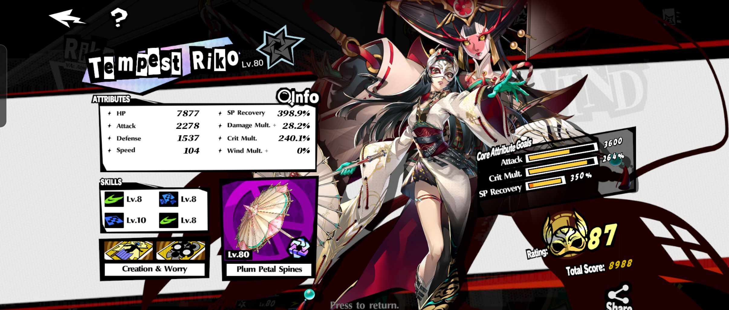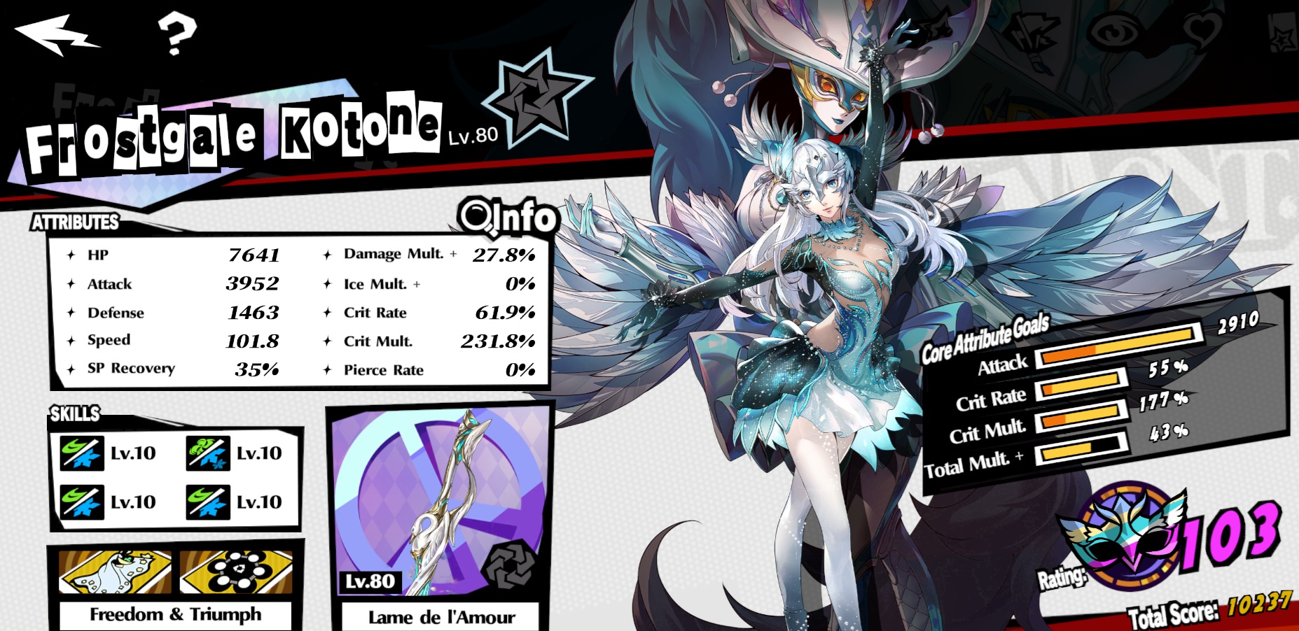 Thanks, i guess i put too much attack for my Kotone, I'm lacking in crit rate