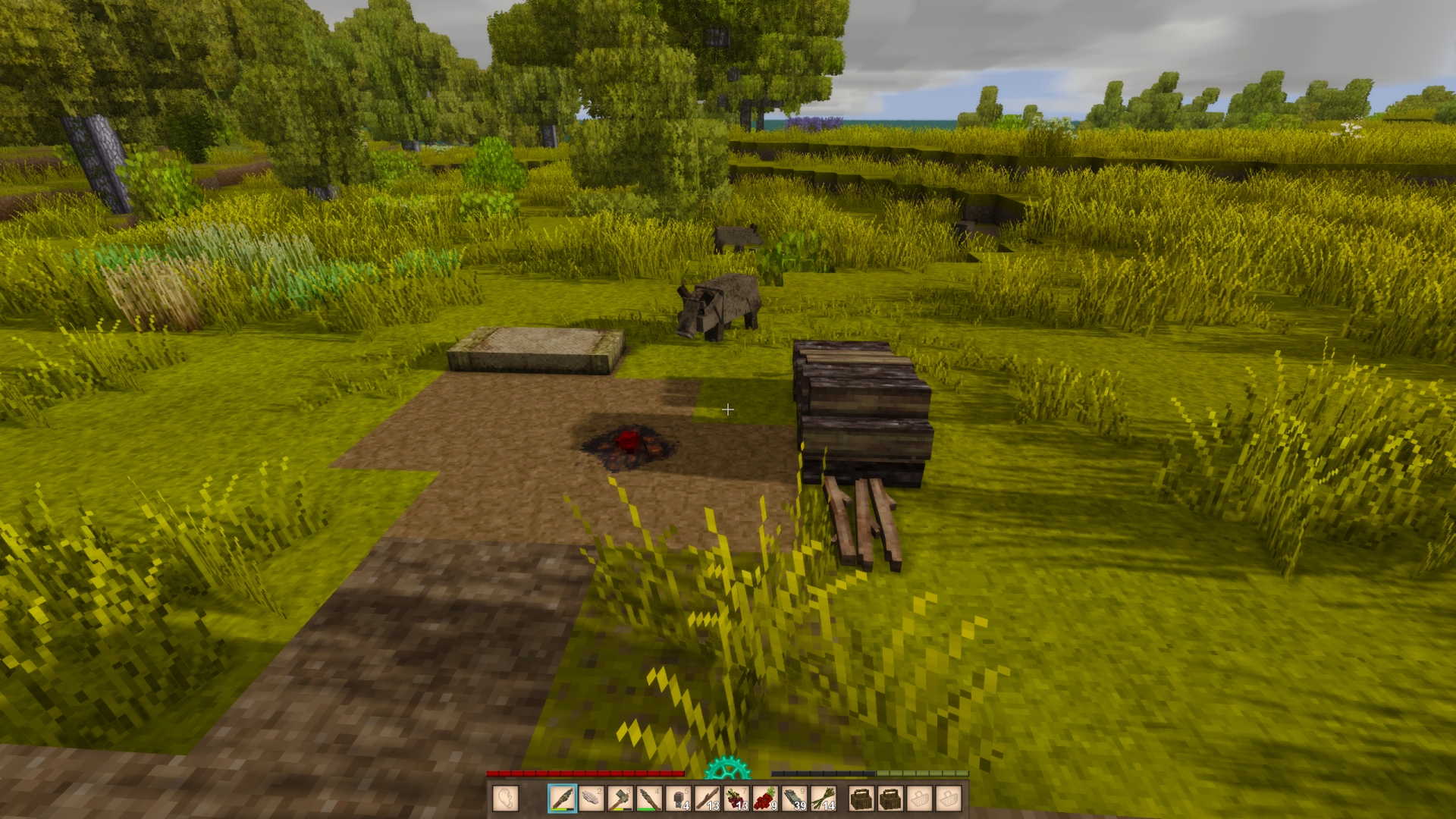 Fine, I'll finally start another run.Messed with the settings a bit and I think I got one that gives me pretty decently sized oceans to make use of the new boats.Playing with a few house rules like not allowing myself to cross large bodies of water without a boat or raft, so for now I'm actually "stuck" on a small-ish island with what seems to be a bigger continent very close to the north and vast ocean in all other directions.First order of business is to set up a camp from which to explore for a place for my first base. Since the island isn't too big I honestly don't even think it matters much where I build though.I might mess with the downscaling settings for my VS screenshots a little, they still look a little ass I think
