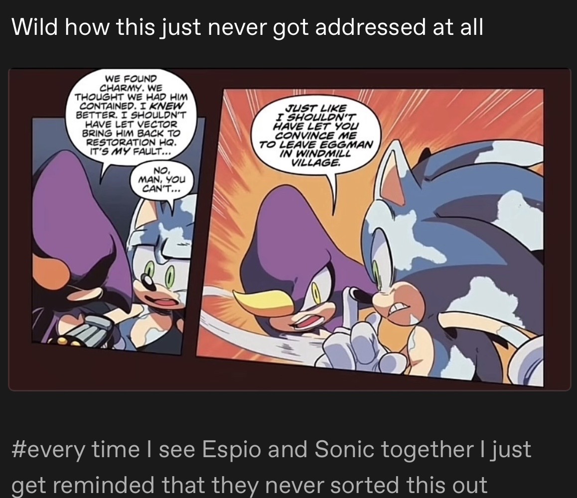 >>557223580>mad at Tails for tapping the literal hottest Sonic girlHe sounds based to me.